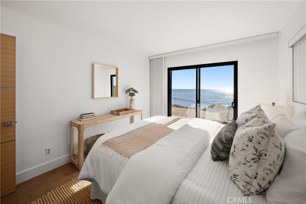 Perched dramatically above the Pacific along Shell Beach’s coveted Shoreline Drive, this Contemporary Coastal retreat captures panoramic ocean views from every room. Thoughtfully redesigned with an emphasis on natural light, clean architectural lines, and seamless indoor-outdoor flow, this residence perfectly balances refined sophistication with relaxed seaside living. The open-concept main level welcomes you with vaulted beamed ceilings and wide-planked flooring that carries throughout the space. Walls of glass frame endless blue horizons and open to a glass-enclosed deck designed for entertaining, dining al fresco, or simply soaking in breathtaking sunsets over the Pacific. The great room centers around a sleek linear fireplace and flows effortlessly into the dining area and gourmet kitchen, where custom cabinetry, a sea-glass mosaic backsplash, and dramatic natural stone countertops reflect the ocean’s hues. Stainless steel appliances, modern lighting, and a stylish breakfast bar complete this elevated culinary space. Upstairs, the primary suite offers a serene private escape with vaulted tongue-and-groove ceilings, a contemporary see-thru fireplace, and sliding glass doors leading to a private balcony overlooking the coastline. The spa-inspired ensuite bath features radiant floor heating, marble and glass finishes, dual vanities, and a large walk-in shower that evokes a luxurious retreat. A custom dressing area with built-ins and mirrored cabinetry provides abundant storage and elegance. Two additional bedrooms on the lower level open directly to the backyard, each featuring sliding glass doors that invite in sea breezes and uninterrupted ocean views. The guest bath is beautifully appointed with sleek tilework, dual vanities, and a walk-in shower with a rainfall fixture. Outside, the blufftop yard offers a front-row seat to the ever-changing coastline. Low-maintenance landscaping, mature plantings, and multiple seating areas create a tranquil environment for relaxing or entertaining above the waves. Supported by its own seawall, the home provides peace of mind and enduring protection from coastal erosion—an invaluable asset on the bluffs. Located in one of Shell Beach’s most desirable enclaves—just moments from oceanfront dining, boutique shops, and coastal trails—this residence embodies the essence of Central Coast living, where architecture and ocean converge in timeless harmony.