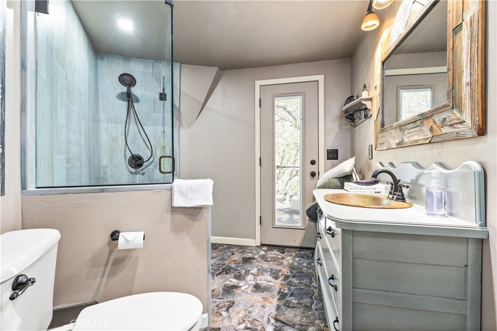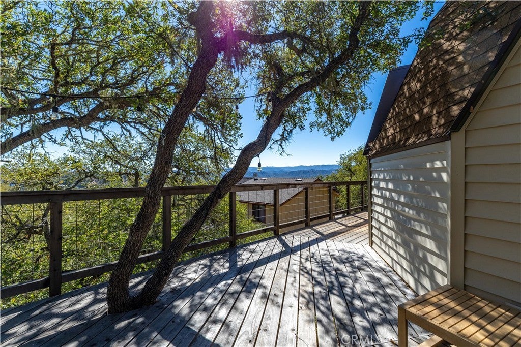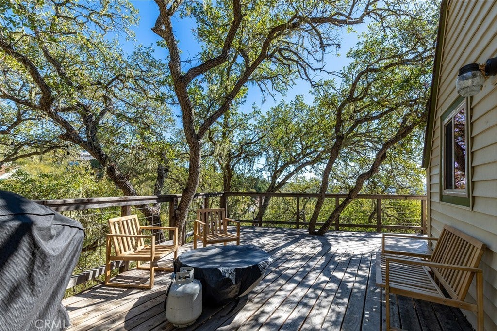 Nestled in the serene hills of the Oak Shores community at Lake Nacimiento, this one-of-a-kind updated dome house offers a perfect blend of architectural uniqueness, modern comfort, and breathtaking natural beauty. The iconic geodesic dome design not only turns heads but also provides exceptional energy efficiency and panoramic views from every angle. Step inside to an open-concept layout perfect for seamless entertaining, with fresh finishes, ample natural light, and a layout that feels both expansive and intimate. From sleek kitchen countertops and updated appliances to refreshed bathrooms and flooring, every detail has been curated for contemporary style without sacrificing the home's charm. The main living area features walls and ceilings finished in reclaimed redwood with a cast-iron wood-burning stove. Multiple newly installed mini-split units deliver efficient heating and cooling. The kitchen offers marble countertops, a hammered copper sink, stainless steel appliances, breakfast bar seating, a large pantry behind barn-door detailing, and high-end finishes throughout. On the upper level (loft) you’ll find an additional bedroom/entertainment area plus a fully-remodeled large bathroom. On the main living level are two spacious bedrooms, updated adjacent bath with walk-in shower, and mirrored closets with ceiling fans for comfort. Perched up the hill on a generous lot, enjoy unobstructed vistas of the surrounding oak-dotted landscapes. The home boasts an oak-shaded back deck with views of the surrounding woodlands — perfect for lounging, entertaining or soaking in nature. The home has a newer roof and vinyl siding and a hot-tub pad is already in place. The garage has two unfinished rooms ready to be turned into additional livable space as well. This house would make a great Vacation Rental, personal home, or vacation home! As part of the exclusive Oak Shores community, you'll have easy access to Lake Nacimiento's world-class fishing, watersports, and trails, plus proximity to Paso Robles' renowned wineries and dining—all while embracing the peaceful, rural feel. The community has it’s own Marina, 2 launch ramps, pool, community center, mini-golf course, pickleball courts, and basketball court.