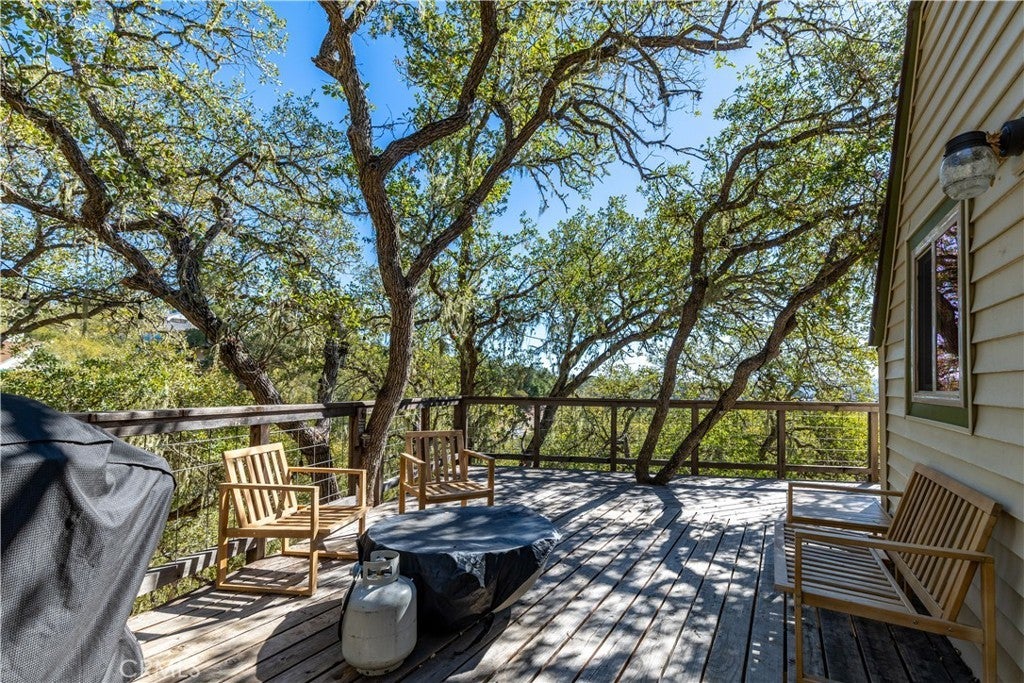 Nestled in the serene hills of the Oak Shores community at Lake Nacimiento, this one-of-a-kind updated dome house offers a perfect blend of architectural uniqueness, modern comfort, and breathtaking natural beauty. The fully furnished iconic geodesic dome design not only turns heads but also provides exceptional energy efficiency and panoramic views from every angle. Step inside to an open-concept layout perfect for seamless entertaining, with fresh finishes, ample natural light, and a layout that feels both expansive and intimate. From sleek kitchen countertops and updated appliances to refreshed bathrooms and flooring, every detail has been curated for contemporary style without sacrificing the home's charm. The main living area features walls and ceilings finished in reclaimed redwood with a cast-iron wood-burning stove. Multiple newly installed mini-split units deliver efficient heating and cooling. The kitchen offers marble countertops, a hammered copper sink, stainless steel appliances, breakfast bar seating, a large pantry behind barn-door detailing, and high-end finishes throughout. On the upper level (loft) you’ll find an additional bedroom/entertainment area plus a fully-remodeled large bathroom. On the main living level are two spacious bedrooms, updated adjacent bath with walk-in shower, and mirrored closets with ceiling fans for comfort. Perched up the hill on a generous lot, enjoy unobstructed vistas of the surrounding oak-dotted landscapes. The home boasts an oak-shaded back deck with views of the surrounding woodlands — perfect for lounging, entertaining or soaking in nature. The home has a newer roof and vinyl siding and a hot-tub pad is already in place. The garage has two unfinished rooms ready to be turned into additional livable space as well. This house would make a great Vacation Rental, personal home, or vacation home! As part of the exclusive Oak Shores community, you'll have easy access to Lake Nacimiento's world-class fishing, watersports, and trails, plus proximity to Paso Robles' renowned wineries and dining—all while embracing the peaceful, rural feel. The community has it’s own Marina, 2 launch ramps, pool, community center, mini-golf course, pickleball courts, and basketball court.