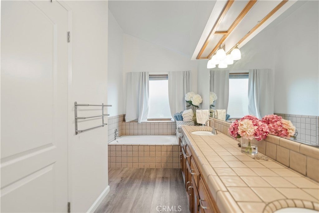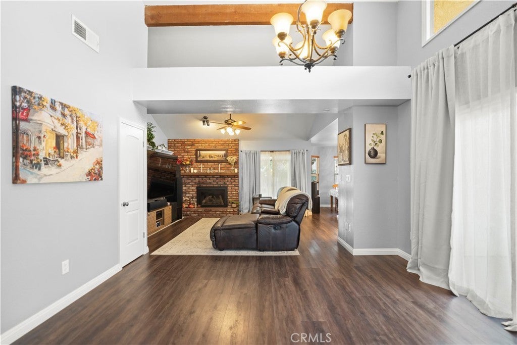 Welcome to this exceptional Laurelglen property that perfectly blends classic comfort with modern efficiency! Outside, showcases great curb apeal with mature landscaping. Enjoy immediate savings thanks to the valuable addition of paid-off solar panels.The home boasts a bright and airy atmosphere, featuring vaulted ceilings and beautiful wood-look flooring throughout the main living areas. The family room is an ideal space for gathering, centered around a charming brick fireplace. For the modern professional, a dedicated home office awaits, featuring impressive built-in wood bookshelves.The primary suite offers a luxurious escape. Spacious master bedroom including a well-appointed double sink bathroom a relaxing soaking tub, and a separate, beautifully tiled walk-in shower. Practicality is covered with a convenient indoor laundry room that includes ample cabinet storage, and a large walk-in closet.