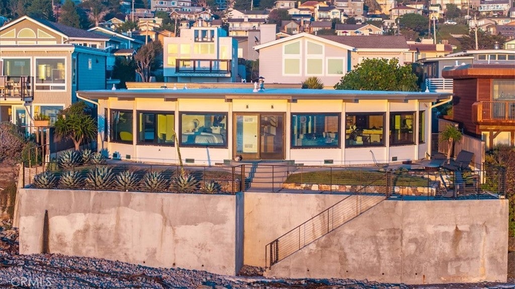 Oceanfront Mid-Century Modern Estate — Main Residence and Guest Home Privately set behind a gated entrance on Cambria’s coveted Sherwood Drive, this architecturally curated oceanfront estate blends iconic mid-century design with a complete coastal modern transformation and full renovation. The sophisticated single-level main residence embraces dramatic, panoramic ocean and white-water views, while the privately situated guest home, just steps from the water’s edge and enhanced by the soothing sound of the surf, offers a serene sense of separation. Between 2020–2022, the entire estate was re-envisioned and renovated in collaboration with a well-respected architect and custom builder. The home now showcases refined finishes, warm modern materials, and a gallery-inspired aesthetic. Signature mid-century architectural elements including the curved wall, semi-circular glass line, exposed beams, and original floor lines were preserved and enhanced, grounding the home’s sculptural presence along the coastline. Inside the main residence: Raised ceilings with exposed beams and expansive picture windows, chef-caliber kitchen with Wolf appliances and waterfall island, custom cabinetry, designer lighting, artisan fixtures, and wide-plank flooring, showpiece gas fireplace, new roof, windows, doors, and refined finishes, new HVAC system with heat and air conditioning, updated plumbing and electrical, new powder bath and discreet laundry area. The guest home mirrors the same sophisticated modern design with its own private entry and beautifully finished interior, an ideal space for hosting or retreating in complete privacy. Resort-style outdoor living includes: Tranquil courtyard with sculptural concrete platforms, multiple sunset-facing terraces and oceanfront sitting areas, fire-pit lounge overlooking the waves, architectural coastal landscaping with mature succulents and ambient exterior lighting, new concrete walls, walkways, steps, with courtyard and ocean-side railing. A rare and irreplaceable oceanfront offering where iconic architecture, thoughtful craftsmanship, and modern coastal luxury converge along one of Cambria’s most captivating shorelines. Claim your place on the Cambria coast...where architecture and peacefulness come together to meet the incredible views of the sun and the sea!