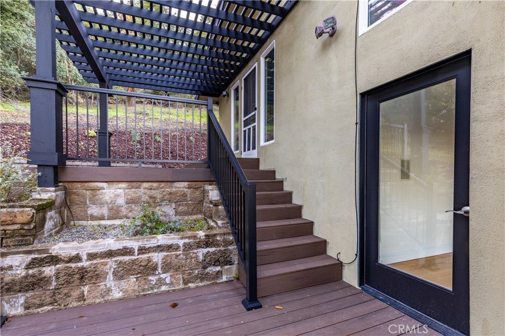 Spectacular location near the Atascadero Lake Park with privacy and views! Enjoy the peaceful setting of this 3 bedroom and 2 bathroom home with an open floor plan that offers abundant natural light with multiple patio doors that access the outdoor decks and patios. Your entry is greeted with hard wood flooring that flows into the living room. The high ceiling is balanced with an attractive wood burning fireplace and view windows. The kitchen has been updated and offers an eating bar, dining area, and opens to a large outdoor patio for enjoying the fantastic views while entertaining or relaxing. The primary bedroom has an on-suite bathroom and a private deck to the great outdoors. The third bedroom has a loft in addition to outdoor access to a separate entry.