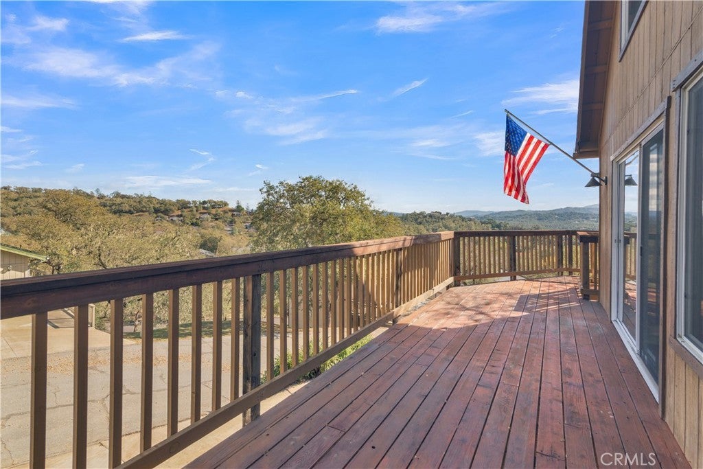 Tucked inside the gated community of Oak Shores, this inviting two-story home blends lake-area charm with everyday convenience. Off-street parking and a 29' deep garage, complete with washer, dryer, and on-demand water heater, set the tone for a property designed with practicality in mind. A wraparound deck welcomes you with peaceful views of Lake Nacimiento, offering the perfect spot for morning coffee or evening sunsets. Inside, the main level features an open layout wrapped in warm knotty pine and updated with new vinyl flooring. The kitchen is thoughtfully arranged with a long breakfast bar, dishwasher, propane range, and a door leading directly to the rear deck for easy indoor-outdoor entertaining. A generous pantry, utility closet, and a full bathroom add valuable functionality on the main floor. Upstairs, two bedrooms and a full bathroom create a relaxing retreat. Step out onto the private rear balcony to soak in sweeping mountain views, a serene backdrop to start or end your day. Owning in Oak Shores means enjoying resort-style amenities year-round: pickleball courts, hiking trails, a mini golf course, playground, two boat launch ramps, a marina with over 60 courtesy slips, a heated swimming pool, clubhouse, and even a campground. This property offers the best of lake living and community convenience in one beautiful package.
