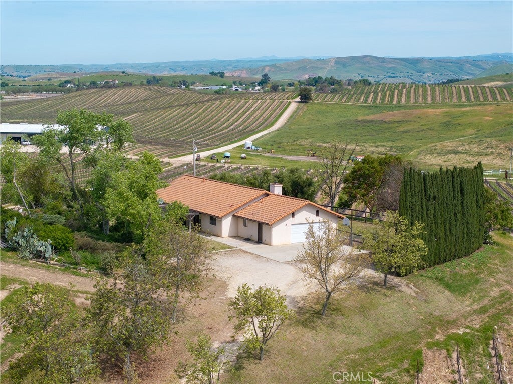 Enjoy the best of Paso Robles wine country living with this peaceful and private 14-acre property, offering scenic views and relaxed rural charm. The 1,902± sq.ft. single-level home features 4 bedrooms, 2 bathrooms, and a bonus room—perfect as a home office, guest space, or hobby room. The open floor plan includes a spacious kitchen with ample storage, a welcoming dining area, and a cozy living room with a wood-burning fireplace and large windows that frame breathtaking vineyard and valley views. Professionally managed and low-maintenance, the 11± acres of premium Cabernet Sauvignon vines offer passive income potential, with an optional grape contract available through a luxury Napa wine company. Strong projected 2025 crop yields between 4-5 TPA offer great potential income. Enjoy the perks of vineyard ownership without the labor—ideal for investors or those seeking a tranquil home in wine country. The setting is serene and inspiring, surrounded by lovely neighbors including a lavender farm, equestrian ranch, olive grove, and fruit orchard. The property offers abundant space for animals, gardens, and future expansion—whether you envision an additional home, ADU, or workshop. Interested in removing some or all of the vineyard? No problem! Vacation rental and 1031 exchange eligible, this is a rare opportunity to own a turnkey vineyard lifestyle property in a desirable Paso Robles location.