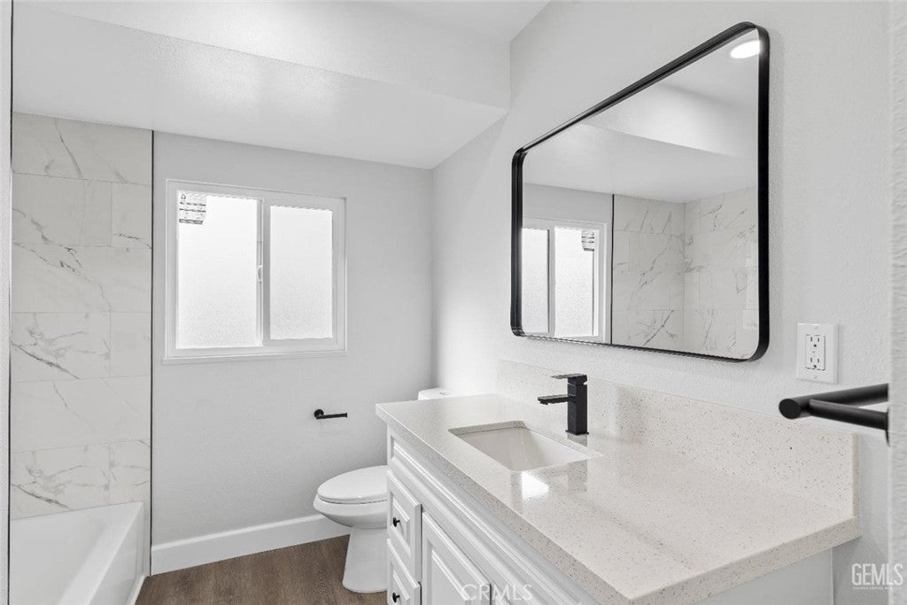Stunning, updated and move in ready 3 bedroom 2 bath home. As soon as you walk in you will imagine spending time with the family in the spacious living room featuring cozy fireplace and modern recessed lighting. Step into the kitchen and you will appreciate the updated sparkling counter tops, modern deep sink, stove, new faucet, and new cabinets with soft closing drawers and doors. All bedrooms have been updated as well and offer vinyl flooring, new blinds, fans throughout, and updated hardware. The bathrooms will awe your guests with custom tile work, updated water fixtures, new vanities, mirrors, new tub in hall bath and stand in shower in main bedroom. On the exterior you will find newer roof, fresh paint,central AC/Heat, new dual pane windows, and insulated garage door.The rest of the home features luxury waterproof flooring, new baseboards, new bedroom and closet doors, blinds throughout, and ALARM with Cameras. The property also has alley access and gate in rear.