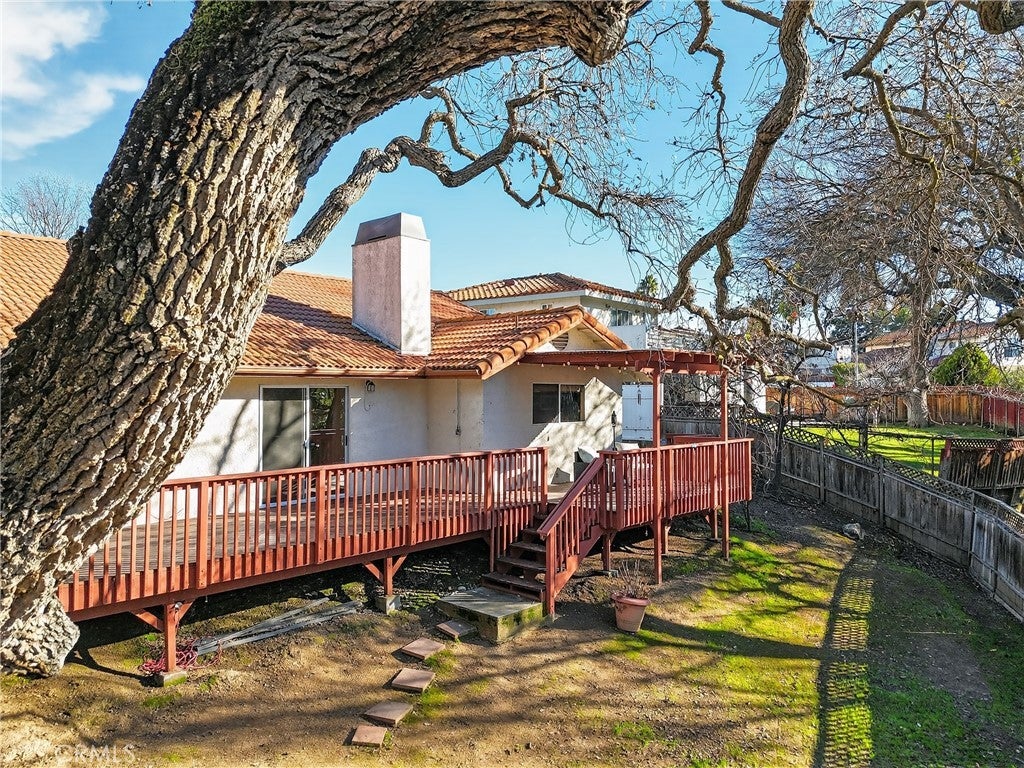 Location, privacy, and outdoor living come together in this inviting Paso Robles home. Welcome to 2097 Fallbrook Court, a creekside property ideally situated near the Paso Robles Golf Club and tucked into a peaceful setting just minutes from downtown. This well-maintained 3-bedroom, 2-bath home offers approximately 1,500 sq ft of comfortable living space on a generous 9,500 sq ft lot. Inside, you’ll find granite countertops and stainless steel appliances in your kitchen which is open to your dining room. The living room is spacious with a warm and inviting fireplace and architecturally stylish opening to the kitchen and dining room. A mix of carpet, tile and luxury vinyl flooring, and a whole-house fan, creating a functional and welcoming space ready for its next owners. Both bathrooms have been updated too! A golf cart garage adds convenience and flexibility. The backyard is where this home truly shines. Designed for relaxation and entertaining, it features a deck spanning the back of the home, with both a pergola and open deck space, giving you the option to enjoy the shade or soak in the sun! A majestic oak tree that fills the view from both the living room and primary bedroom and plenty of room for all of your backyard dreams and plans. With three sliding doors off the living room, kitchen, and primary bedroom, indoor-outdoor living is effortless. The yard offers excellent privacy, set away from the golf course and surrounded by mature trees. The hot tub and outdoor heater are included, creating a perfect space to unwind year-round. Behind the fence, enjoy a charming garden area near a seasonal creek. You'll also find peach, plum, apricot, and fig trees on the property. The garage is spacious with gleaming epoxy floors and there is plenty of parking at your extra wide driveway. The front yard also offers a lush lawn, adding to the curb appeal. All of this is just minutes from downtown Paso Robles offering charming shops, world-class dining, and award-winning wineries. A wonderful opportunity to enjoy the Paso Robles lifestyle — schedule your showing today before it’s gone!