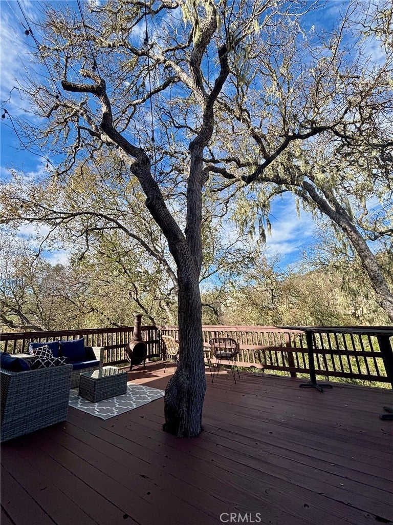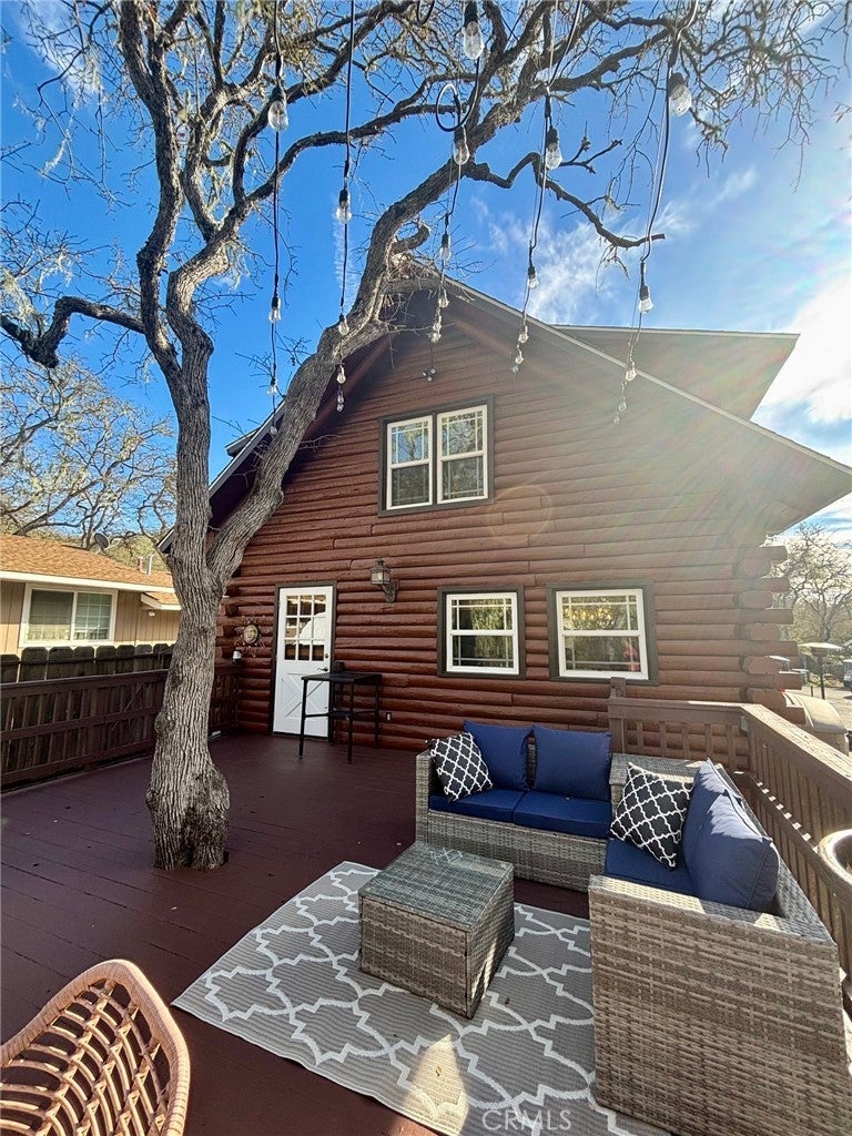 **Charming Oak Shores Log Cabin Retreat at Lake Nacimiento!** Nestled at the end of a quiet cul-de-sac in the desirable Oak Shores Community, this beautifully updated 2-bedroom, 2-bath log cabin captures the true Lake Nacimiento lifestyle. The property offers abundant level parking with ease of backing in boats, trailers, and all your lake toys—perfect for weekend getaways or full-time living. Inside, enjoy new flooring, fresh paint, updated bathrooms, and an upgraded kitchen with new appliances. The main entry level features the kitchen, dining area, and a full bathroom, while cozy wood-burning fireplaces in the living room and spacious upstairs bedroom create the perfect mountain-lodge ambiance. Step out onto the expansive back deck off the kitchen and take in gorgeous oak-studded greenbelt views—ideal for entertaining or relaxing after a day on the lake. This cabin delivers a year-round getaway feel in one of Lake Nacimiento’s most sought-after gated communities. Furnishings negotiable.