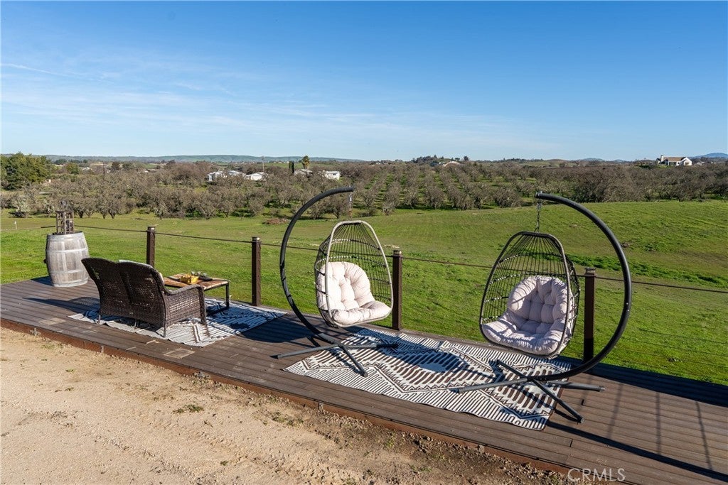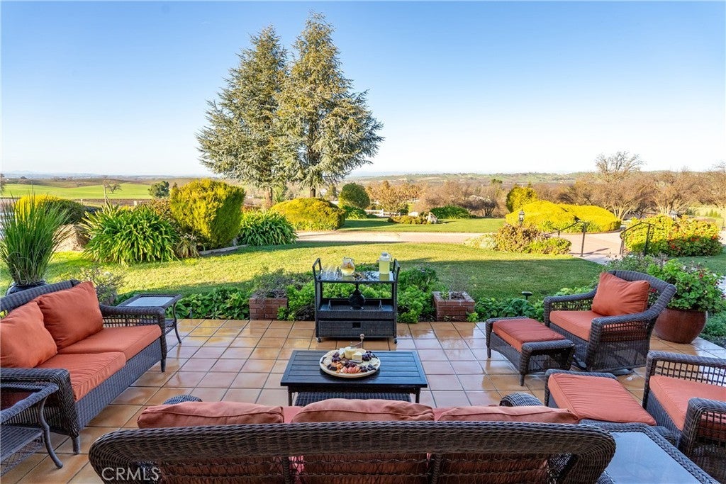 Perched at approximately 1,100 feet in elevation with sweeping 360-degree hilltop views, this estate offers a rare and exceptionally 20± acres featuring two residences, a barndominium, workshop facilities, resort-style outdoor living with pool, spa, solar, and a boutique vineyard. A dramatic 700-foot tree-lined driveway leads to a circular drive, setting the tone for this private estate. The main residence is a 3,842± square foot custom home, designed for everyday comfort and entertaining. The home offers two formal bedrooms plus a flexible room ideal for a home office, den, or optional third bedroom, along with 2.5 bathrooms. Architectural highlights include vaulted ceilings, curved archways, mahogany tray ceilings, marble flooring, copper chimney caps, and panoramic views. The chef’s kitchen features custom cabinetry with Raymond Enkeboll wood carvings, Sub-Zero refrigeration, a BlueStar 8-burner range with double ovens, Fisher-Paykel double dishwashers, wine bar, walk-in pantry, and oversized center island. The primary suite offers direct pool and spa access, a walk-in closet, dual vanities, and a jetted soaking tub. The attached three-car garage is fully finished with epoxy floors, storage, and a Tesla charger. The second residence, is a 1,588± square foot 3 bedroom, 2 bath home with wood floors, vaulted ceilings, custom cabinetry, gas fireplace, tankless water heater, attached two-car garage, and private outdoor space. A 2,100± square foot barn provides workshop and storage space, high bay roll-up door, solar array, split HVAC, and access to a private apartment. The barndominium includes approximately 750± square feet with bedroom, bunk room, bathroom, covered patio, plus an additional 495± square foot bonus or hobby room. Outdoor living includes a 20x40 pool and spa, water features, fire bowls, outdoor shower, and an outdoor kitchen with gas grill, Fontana Forno Italian wood burning pizza oven, Santa Maria grill, smoker, kegerator, and pergola. Amenities include a putting green, bocce court, chicken coop, landscaping, and an east-facing view deck. The property features two wells, two septic systems, 40,900± gallons of water storage, fire sprinklers, smart irrigation, automatic gate, chip seal driveway, and fencing. Approximately two acres are planted to Aglianico and Cabernet Franc vines. A turnkey estate offering privacy, infrastructure, lifestyle amenities, and income potential, just minutes from Paso Robles, Templeton, and Atascadero.