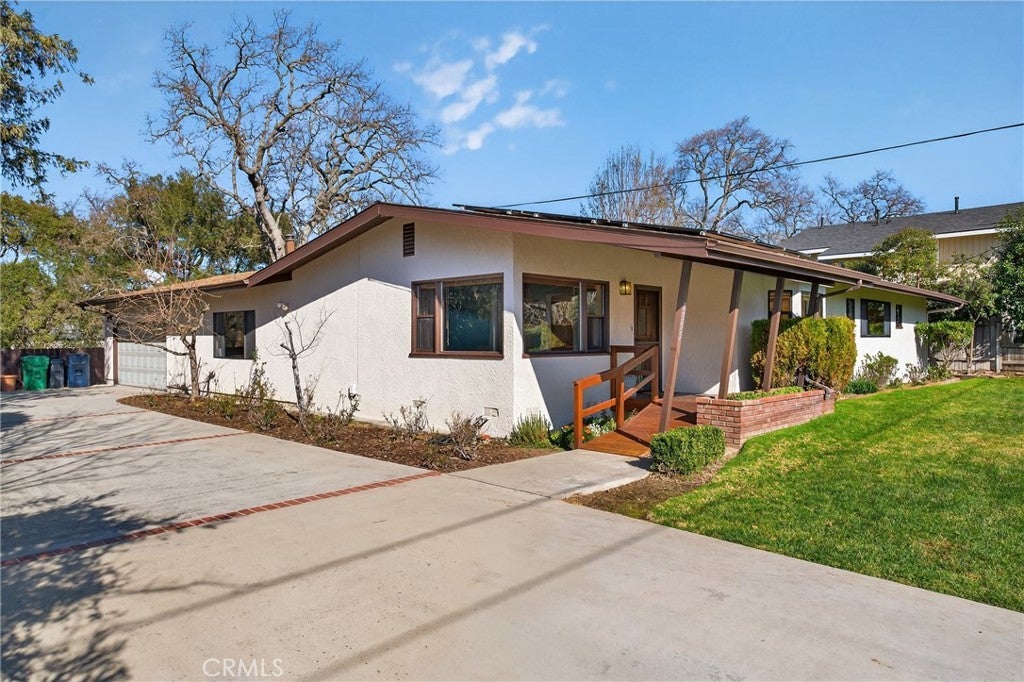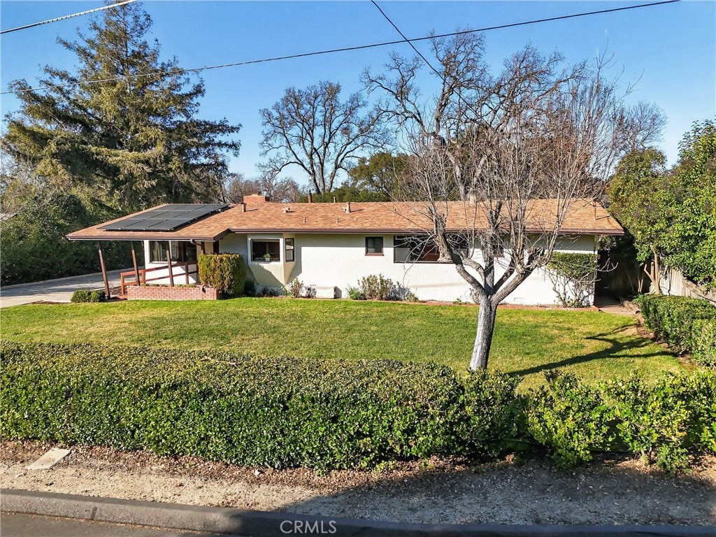 Welcome to 8355 San Andres Avenue, a single-level home with appealing mid-century style, set on a spacious creekside lot with multi-family zoning in an established Westside Atascadero neighborhood. The flexible floor plan offers both a living room and family room, formal dining, and three bedrooms with two bathrooms. A lush front lawn, stylish porch, and concrete driveway with brick accents create a warm first impression, while owned solar adds efficiency and long-term value. Upon entry, the living room features a gas fireplace and large picture windows that bring in natural light. The kitchen and dining area sit between the living room and family room, offering a practical and functional layout. The kitchen includes ample storage with custom pull-out drawers, a cooktop, and separate oven. Remote-controlled roller shades at the kitchen window provide adjustable light and privacy with views of the grassy front yard. Just beyond, the family room offers additional space to relax or entertain, featuring a freestanding wood-burning stove and French doors that open to the backyard, creating a natural connection to the outdoor space. All three bedrooms feature ceiling fans and closets with built-in shelving. The primary bedroom includes a nicely sized closet and an en-suite bathroom with walk-in shower, vanity area, and bidet. The laundry area is conveniently located just off the primary bathroom and includes cabinetry for added storage. The second bathroom, located off the hallway near the kitchen, features a vanity and tub-shower combination, ideal for guests or everyday use. Low-maintenance laminate wood flooring runs through most of the home, with tile flooring in both bathrooms and the laundry area. The large backyard offers space for outdoor living, gardening, or future possibilities and includes a storage shed. A seasonal creek at the rear of the property adds a natural buffer from neighboring homes. Additional features include central heating and air, plus an oversized attached two-car garage with built-in storage cabinets. Multi-family zoning provides flexibility for future options, while owned solar supports a lower cost of living. This Westside retreat offers privacy in a natural setting just minutes from downtown Atascadero’s restaurants, breweries, wine bars, and Atascadero Lake Park. Conveniently located between Paso Robles and San Luis Obispo, with Morro Bay a short drive away. Call today to schedule your private showing!