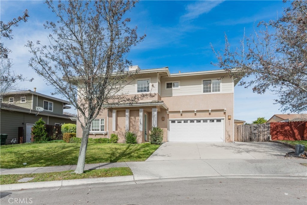 Pristine Paso Robles Home with Main-Level Primary Suite! Welcome to this beautifully maintained residence offering 2,030 square feet of thoughtfully designed living space. This 3-bedroom home includes a versatile bonus/office room and 2.5 baths, ideal for both comfortable living and flexible work-from-home needs. The primary bedroom is conveniently located on the main floor and features double closets, dual sinks, a separate shower and a relaxing soaking tub. The spacious living and dining areas showcase high ceilings and an electric fireplace, creating an inviting and open atmosphere. Some of the upgrades include fresh interior paint throughout, new carpet in the upstairs bedrooms, and engineered hardwood flooring. The updated kitchen is equipped with quartz countertops and a breakfast bar, perfect for casual dining and entertaining. Abundant storage is found throughout the home, including multiple linen and storage cabinets. Additional highlights include a two-car garage with extra driveway parking, a water softener, and serene, beautifully landscaped yards with multiple patio areas and convenient side yard storage area. This immaculate property is truly move-in ready and represents an exceptional opportunity in Paso Robles. Disclaimer, virtual staging has been added to some of the photos.