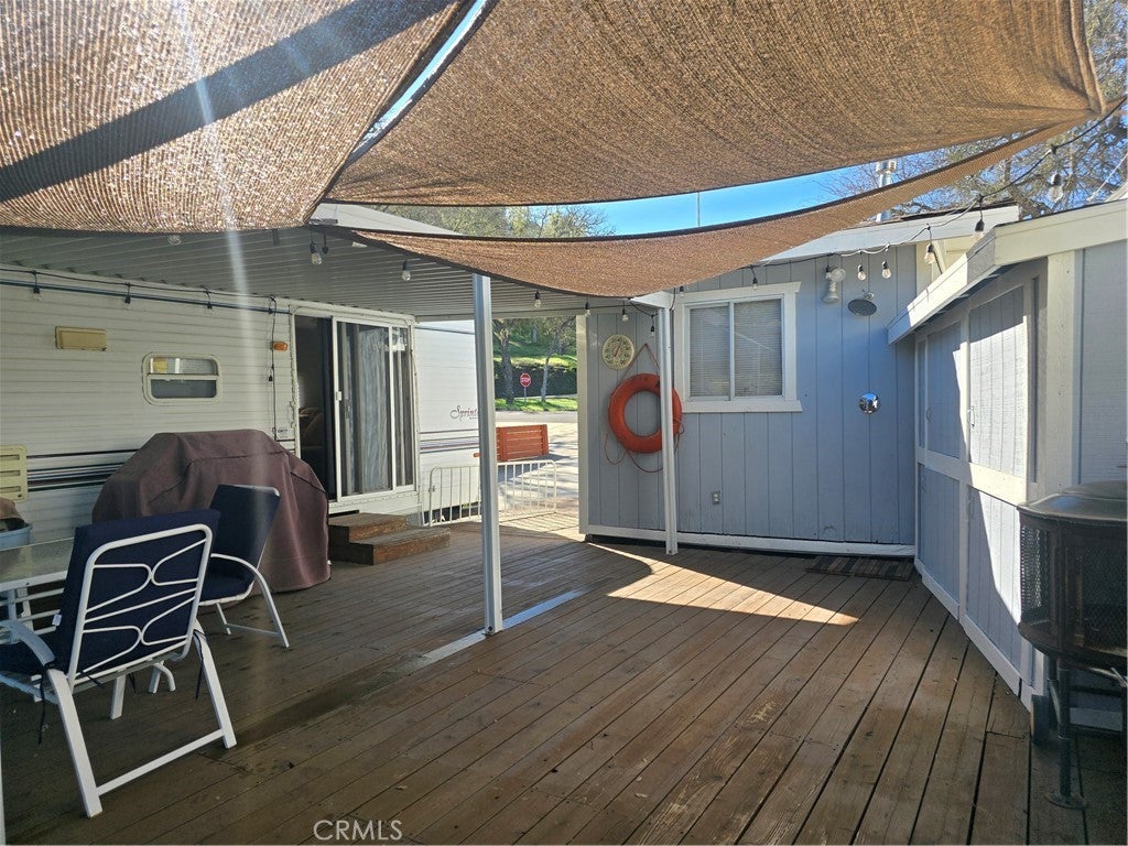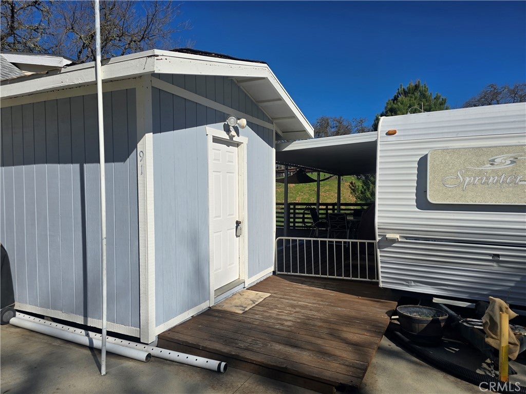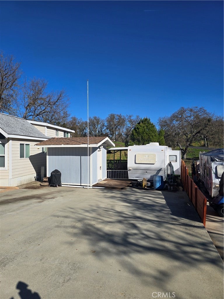 Welcome to your ideal lakeside escape! This unique RV lot located in tract 447 within the gated community of Heritage Ranch and offers the perfect blend of convenience, outdoor recreation, and natural beauty. The property features ample parking, including a large concrete pad ideal for your boat, RV, or recreational toys. Included in the sale is a 2014 Sprinter trailer, offering a comfortable 1 bedroom + bonus sleeping area, a cozy living space, a small kitchen, and plenty of storage. Step outside and relax on the expansive deck, where you’ll enjoy breathtaking views of lush green mountains and frequent sightings of local wildlife. An outdoor shower adds extra convenience for lake days and outdoor living. The property also includes a shed with electricity, refrigerator, washer, and dryer—perfect for storing lake gear—plus additional cabinets for even more storage. Located just minutes from the private launch ramp, the lot also offers additional parking and is conveniently close to community bathrooms, showers, and laundry facilities. Heritage Ranch residents enjoy an impressive list of amenities, including swimming pools, pickleball courts, an equestrian center, private launch ramp, campground, and multiple parks. Outside the gates, you’ll find everyday essentials nearby, including Cappy Culver School, Oak Hill Market, Lake Life Café, Hairtage Salon, Captains cove restaurant, a car wash, and a gas station. This is a rare opportunity to own a turnkey lake retreat in one of Lake Nacimiento’s most sought-after communities. Low HOA $180. monthly