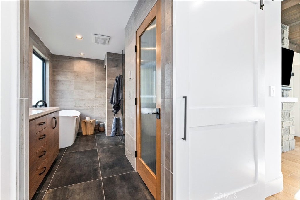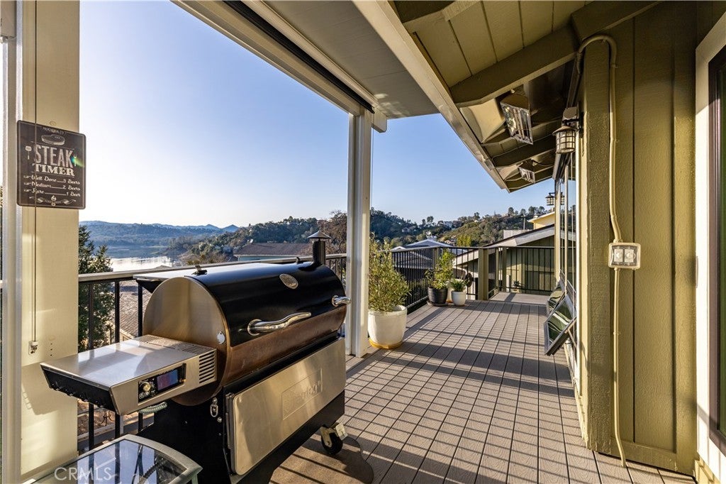 Experience a modern Lake Nacimiento City home of luxury, comfort, and resilience in this impeccably upgraded 3-bedroom home plus an art studio/office and a private basement guest suite with full bath. Thoughtfully designed with premium craftsmanship, energy efficiency, and smart technology, this property offers elevated living with beautiful lake views and breathtaking western sunsets. A new 30-year roof covers all structures, complemented by a Generac whole-house backup generator and a 500-gallon in-ground propane tank. The owned oversized solar system with EV charging provides annual energy credits. Additional upgrades include LED lighting inside & out, whole-house water filtration with UV, add'l under-sink water filtration, upgraded sewage pump, and hot water recirculation so entire home has instant hot water. New Andersen exterior doors and windows and freshly painted interiors and exteriors enhance both beauty and durability. Outdoor living features low-maintenance composite decking, custom pavers, professional hardscape, landscape lighting, and lush landscaping—perfect for entertaining while taking in the lake views. The first-floor deck includes manual & motorized sun shades, outdoor electric heaters, and an outdoor-rated TV. Parking for up to six vehicles. Inside, the home showcases oak hardwood flooring throughout, a whole-house central vacuum system, and a Mitsubishi mini-split heating and cooling system. Smart-home features allow remote management of lighting, shades, and security. The chef’s kitchen features Sub-Zero column freezer, wine fridge, refrigerator, andunder counter beverage refrigerator, plus a Wolf 60” dual-fuel range with griddle. The primary suite offers a custom fireplace, walk-in closet, and spa-like bathroom with custom tile, Toto washlet, radiant heated floors, curbless shower, and soaking tub. Two guest baths feature custom tile heated floors, and washlets. Motorized or manual Smith & Noble shades are installed in all bedrooms, office/ studio. Additional highlights include motorized Velux skylights in the kitchen, studio/office and garage, ceiling fans throughout, Starlink internet, remote-controlled propane fireplaces in the living room and primary suite, and wall-mounted TVs in key rooms. With sweeping lake views, spectacular western sunsets, a flexible art studio/office, and a well-appointed basement guest ed,B, this home delivers a refined blend of luxury, efficiency, and modern smart living.