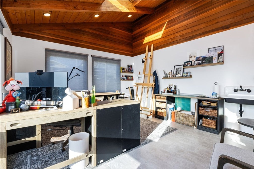 Beamed Ceilings, Wet Bar, Breakfast Bar, Built-in Features, Balcony, Cathedral Ceiling(s), Central Vacuum, Eat-in Kitchen, High Ceilings, Living Room Deck Attached, Pantry, Quartz Counters, See Remarks, Storage, Smart Home, Bar, All Bedrooms Down, Entrance Foyer, Instant Hot Water, Primary Suite, Walk-In Closet(s)