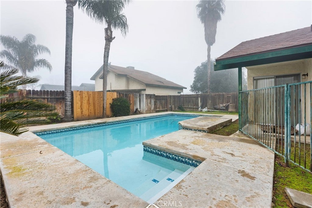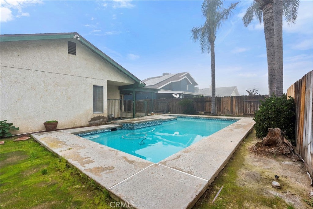 This well-maintained 3-bedroom, 2-bathroom home offers great curb appeal with attractive brick columns at the front of the home. Inside, tile flooring flows through the wet areas, while the living room and bedrooms feature comfortable carpet. The living room is highlighted by a charming brick fireplace, creating a warm and inviting space. The kitchen offers ample counter space and abundant cabinetry, ideal for everyday cooking and entertaining. French doors off the kitchen lead to a pergola-covered patio and a beautifully gated pool, perfect for outdoor enjoyment and relaxing California days. This home combines comfort, functionality, and inviting indoor-outdoor living.