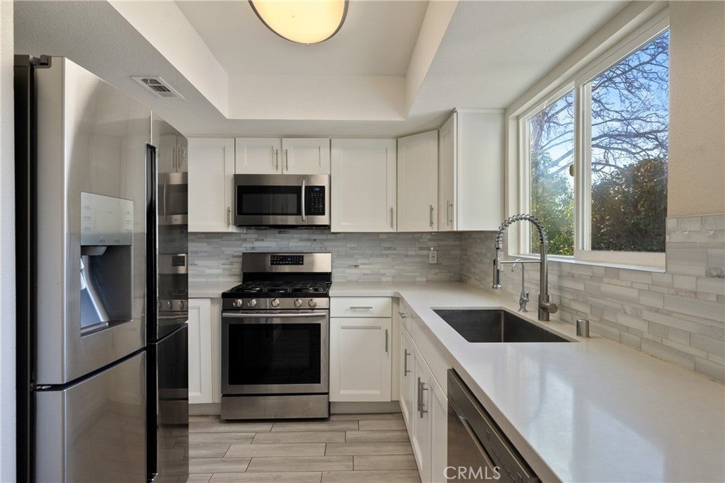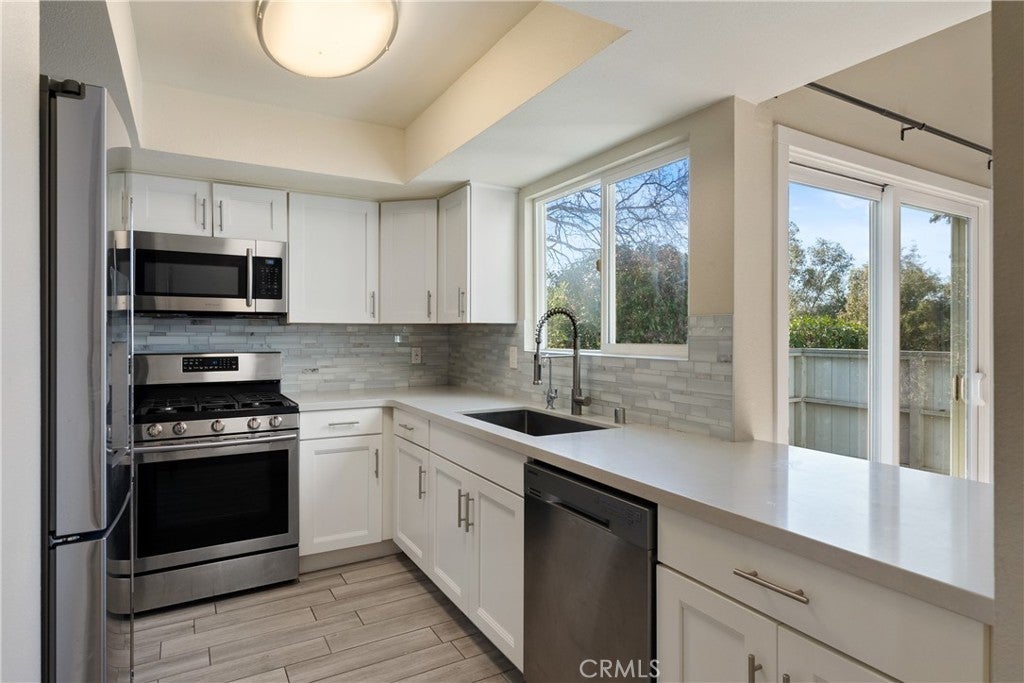 Welcome to 20 Quail Ridge Dr — an inviting condo with a functional layout, tasteful updates, and a convenient location near downtown Atascadero and Sunken Gardens. This 2-bedroom, 1.5-bath home offers 1,041± sq ft of comfortable living with an open-concept lower level featuring a cozy wood-burning fireplace and an adjacent patio off the living room that may be great for indoor-outdoor enjoyment. The updated kitchen is highlighted by quartz countertops, contemporary tile backsplash, chic single basin sink, well-appointed cabinets with large pull handles and a stainless-steel appliance package providing a clean, refreshed feel. A 1/2 bath downstairs adds flexibility for guests. Upstairs, both bedrooms are situated alongside the full bathroom. The primary bedroom includes its own deck—an added space to step outside and enjoy the fresh air. Additional features include recently installed mini split HVAC units for potential energy savings, a 1-car attached garage with laundry hookups plus access to community amenities such as a pool and spa, all close to shops, dining, and local parks.