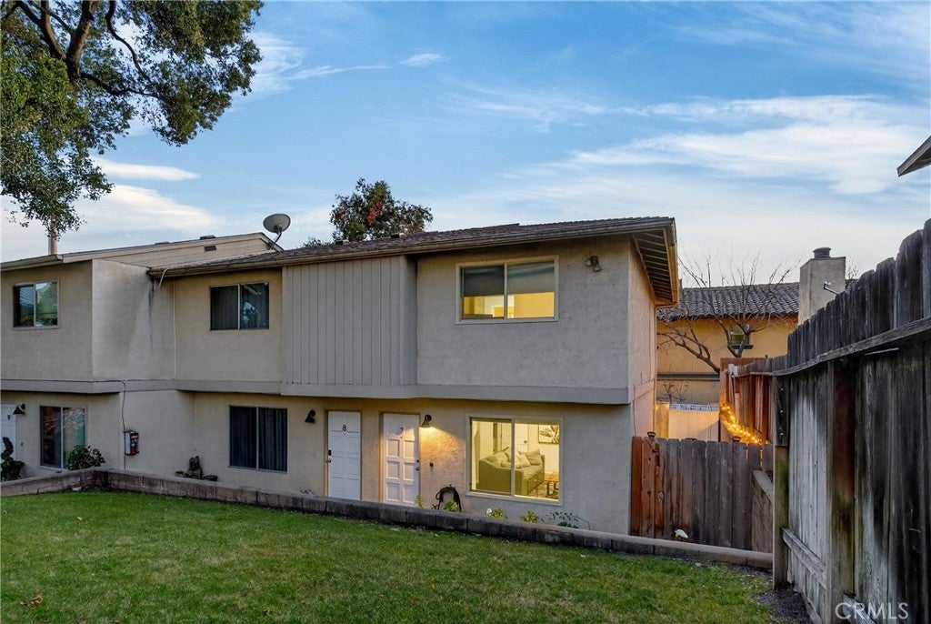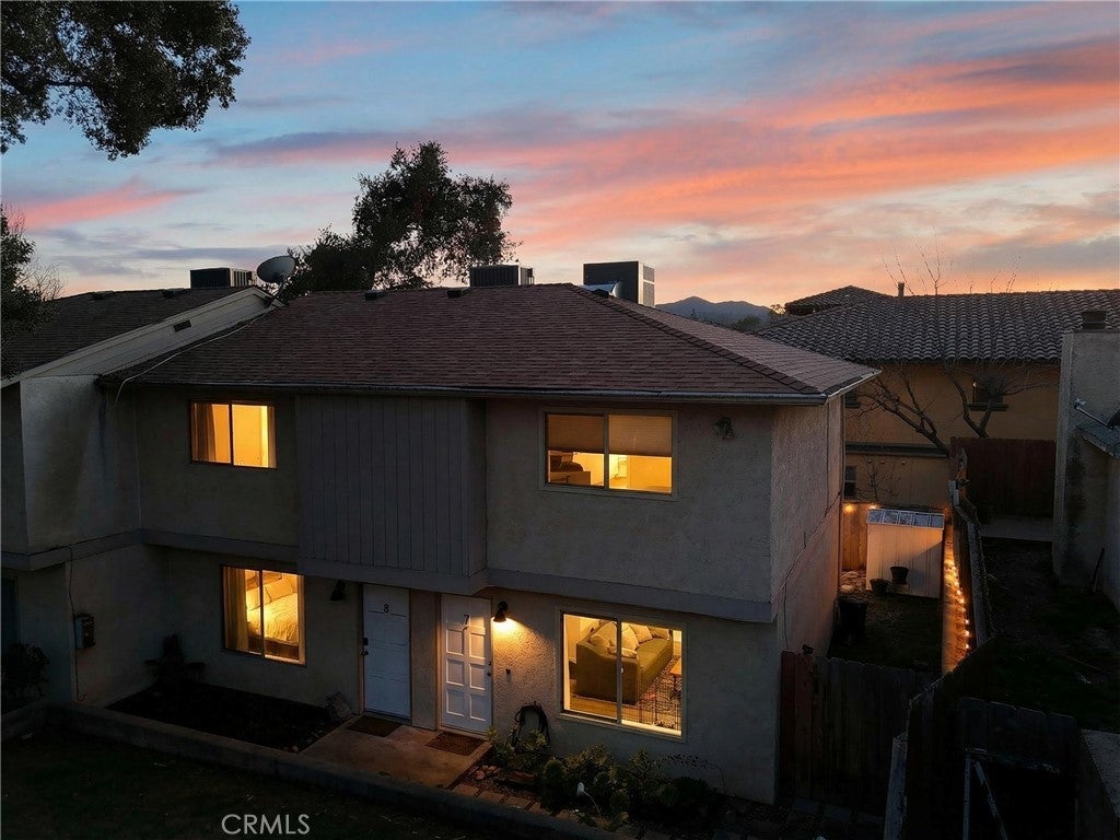 Welcome to 9780 Las Lomas #7 in Atascadero — a thoughtfully upgraded 2-bedroom, 2-bathroom home tucked into the quiet back corner of an intimate community, offering rare privacy with only one shared wall and peaceful greenbelt views from the living room and primary bedroom. Extensively improved with both style and substance, major updates include central heating and air (installed 2022, serviced 2024), dual-pane vinyl windows and sliding door, updated plumbing, new plugs and switches, a new roof in 2024, and full fumigation completed in 2025 — providing confidence for years to come. Natural light fills the open living space, enhanced by recessed lighting and modern finishes. The kitchen shines with white shaker cabinetry featuring soft-close doors and drawers, quartz countertops, a black granite sink, designer backsplash, stainless steel Samsung appliances, custom pantries, and a charming coffee bar for added storage and functionality. Upstairs, two generously sized bedrooms offer remote-controlled ceiling fans, mirrored closet doors, and blackout shades. A Nest thermostat adds smart-home convenience. The primary bathroom is beautifully renovated with an oversized soaking tub, tiled shower surround, updated exhaust fan with integrated light, and contemporary fixtures. A second bathroom provides flexibility for guests or everyday living. Outdoor space is equally impressive. One of the larger lots in the community, the property features four front flower beds, a newly added gate, and a private wraparound yard with low-maintenance turf. A storage shed is included, and Edison string lighting creates a warm setting for relaxing or entertaining. Additional conveniences include remote-controlled blinds throughout (excluding the kitchen), two assigned parking spaces (one standard, one parallel), and a nearby communal laundry facility with three washers and three dryers offering both app and coin operation (approximately 29-minute wash and 45-minute dry cycles; usage fees apply). The HOA, approximately $500/month as of January, covers water, trash, sewer, exterior maintenance (roof, fencing, gutters, pest control and tenting if needed), landscaping, exterior insurance, and monthly cleaning of the laundry facility — allowing for low-maintenance living. Private, extensively upgraded, and thoughtfully maintained — this is a rare opportunity to own a beautifully improved home in a desirable Atascadero location.