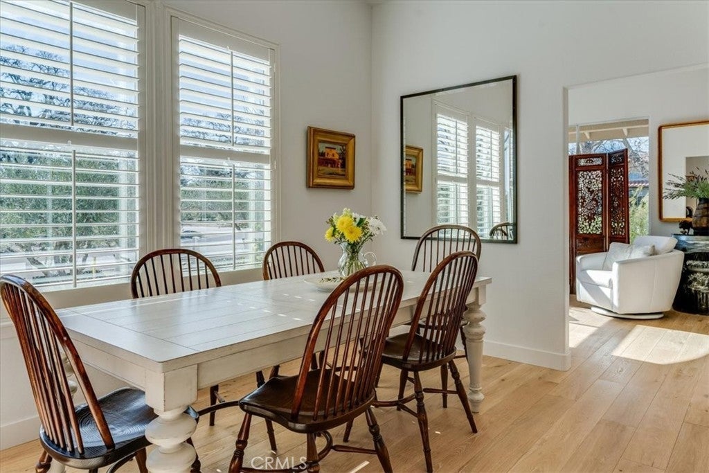 Welcome to 501 Burlwood Lane, located on a spacious corner lot in Templeton’s sought after Wildwood neighborhood. This beautifully updated single level residence with a tile roof blends classic California design with thoughtful contemporary improvements. Over 45 fruiting olive trees grace the approximately one half acre property, creating a distinctive and serene setting. Soaring ceilings, rich bleached hardwood flooring, and abundant natural light create an open and welcoming atmosphere throughout the home. The remodeled kitchen is both elegant and functional, featuring quartz countertops, a spacious island, GE Café French White Series appliances with bronze handles, custom cabinetry, and updated lighting. It flows seamlessly into the dining and living areas, offering an ideal layout for everyday living and entertaining. The primary suite provides a peaceful retreat with vaulted ceilings and French doors opening to the backyard patio, a generous walk-in closet with window, and an updated spa inspired bath showcasing dual sinks, quartz counters, and designer Walker Zanger shower tile. The guest bathroom has also been fully remodeled and features Carrara marble heated flooring, wainscoting, a marble tile shower with an inlaid marble niche, and RH hardware. The laundry room includes modern hex tile flooring, reinforcing the home’s cohesive design. Plantation shutters in the bedrooms and family room add warmth and privacy, complemented by new ceiling fans, LED lighting, updated fixtures, and new outlets and dimmer switches throughout. The oversized garage features epoxy coated floors and a dedicated workshop area, offering excellent storage and flexible workspace options. Outdoors, the backyard showcases mature landscaping, fresh plantings, and a pergola covered patio designed for relaxed outdoor living and entertaining. Located within the highly regarded Templeton School District, the Wildwood community is known for its neighborhood park, scenic walking paths, and welcoming atmosphere. A meticulously maintained and thoughtfully updated home in one of Templeton’s most desirable neighborhoods.