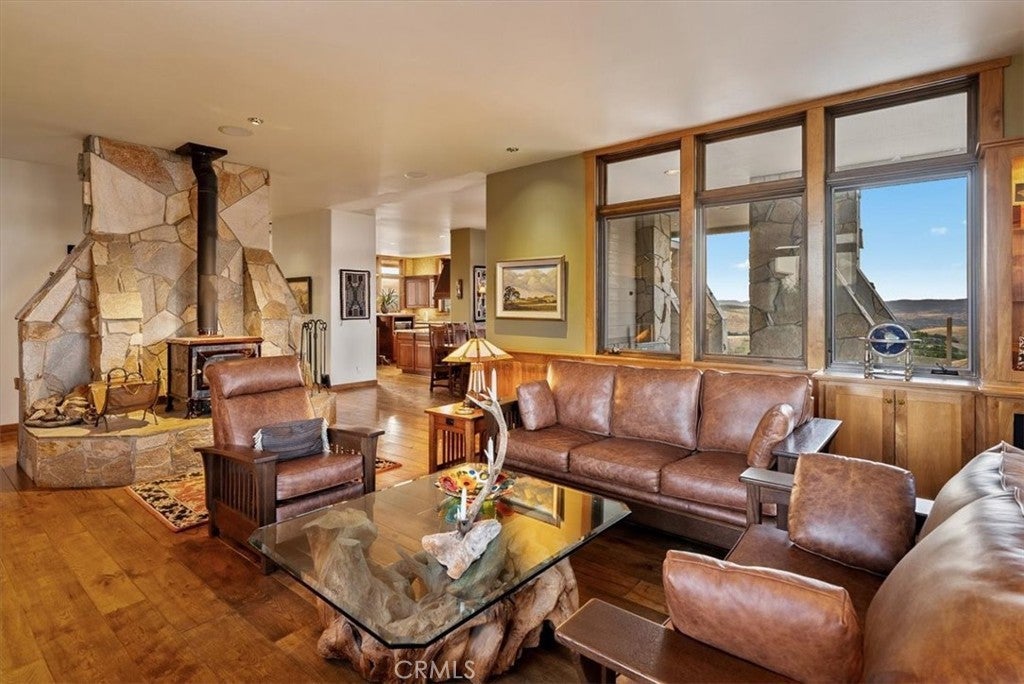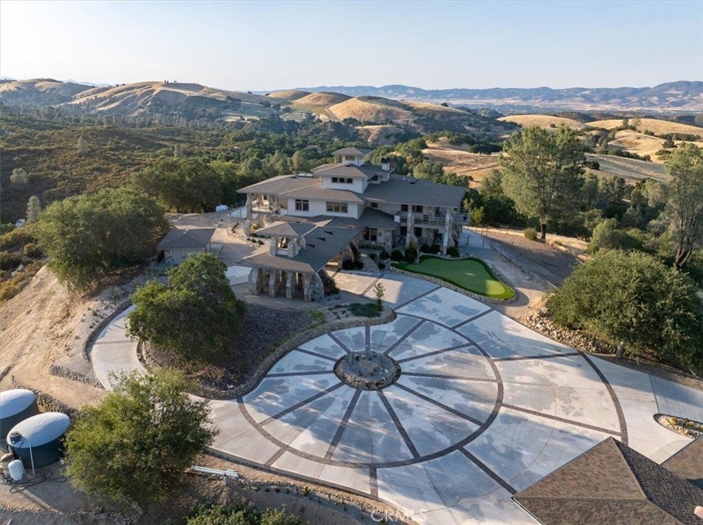 Welcome to your private sanctuary atop 140 acres, offering breathtaking 360-degree views, tranquility, & modern luxury. From the Santa Lucia Mountains to expansive horizons, enjoy stunning sunrises, sunsets, & skies filled with thousands of stars; an astronomer’s paradise. The environment is an ultra-quiet sanctuary with birds, crickets, & wind, creating a peaceful retreat. Paved access makes driving in and out effortless, with additional nearby parcels: an 80-acre open land & a 20-acre hilltop ready-to-build site, included in the sale. The 5,100 sq ft, three-story home features a spacious design blending comfort & elegance. Highlights include a multi-level library with a large skylight, & a luxurious master suite with a built-in king-size bed, cherry wainscoting, & custom closets. The gourmet kitchen boasts granite counters, cherry cabinets, & Viking appliances. Throughout, Hickory hardwood floors, marble accents, and radiant floor heating elevate the interior, complemented by mini-split AC units and a Hearthstone Mansfield wood stove for winter comfort. The property offers extensive amenities: over 2,000 sq ft detached garage with a 47’ RV bay, built-in cabinetry & custom woodwork in the main home, a helipad, and a 300 sq ft outbuilding with Tesla Powerwalls, inverter, & storage. State-of-the-art energy systems include solar panels with Tesla Powerwalls, and a Generac generator. Two wells & a 500-gallon propane tank support utilities and add to the property's appeal. Outdoor living spaces are perfect for entertaining—1,500 sq ft concrete patio, 5,000 sq ft flagstone deck surrounding the house, & a 400 sq ft observation deck on the third floor. The front yard features a putting green ,gorgeous landscaping, & the entire estate is enclosed by a deer fence with five gates & graded roads for easy access. Wildlife is abundant, including deer, foxes, upland game, & songbirds. Additional features include a light-filled hobby room, laundry with farm sink, and a grand entrance with a cast-in-place basement with arched ceiling complete with a heavy steel combination vault/safe door. Architecturally, the home showcases a porte-cochere with belltower & a bronze bell cast in the 19th century. Experience wildflowers in spring, bird songs, the serenity of this timeless retreat. Offering a rare blend of natural beauty and modern comfort, this luxury estate is ready for your private tour. Contact your Realtor to schedule today!