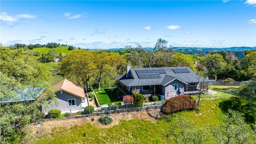Set on a private 4.3± acre parcel in a quiet Westside cul-de-sac of large, well-kept properties, this beautifully updated retreat offers approximately 1,520± square feet in the two-bedroom, two-bath main home, along with a detached garage featuring an apartment and full bath—ideal for guests or extended living. Inside, the home blends comfort and efficiency with a recently remodeled kitchen showcasing quartz countertops and opening to a large living room with a cozy wood-burning fireplace. Over the past decade, improvements include a new roof, wraparound decking, updated flooring, new doors, Milgard windows, Hardie siding, a recently replaced HVAC system and an updated primary bathroom. An owned solar system serves the main home - with typical electric bills under $10 per month. While connected to the grid, the property also offers LG battery backup and generator wiring for added peace of mind. Additional highlights include an owned LifeSource water treatment system and a charming reclaimed lumber she-shed, perfect for a studio or peaceful backyard retreat. Outdoors, the acreage includes three varieties of mature oaks, fully fenced yard, beautiful lawn, established landscaping with drought-tolerant native plants on timed drip systems, paved driveway, potential RV parking, three-space carport, and even a private golf driving range. Equestrian amenities include a metal framed horse barn with two covered stalls, enclosed feed and tack storage, and a nearby ½+ acre fenced pasture—completing this versatile and thoughtfully improved property.