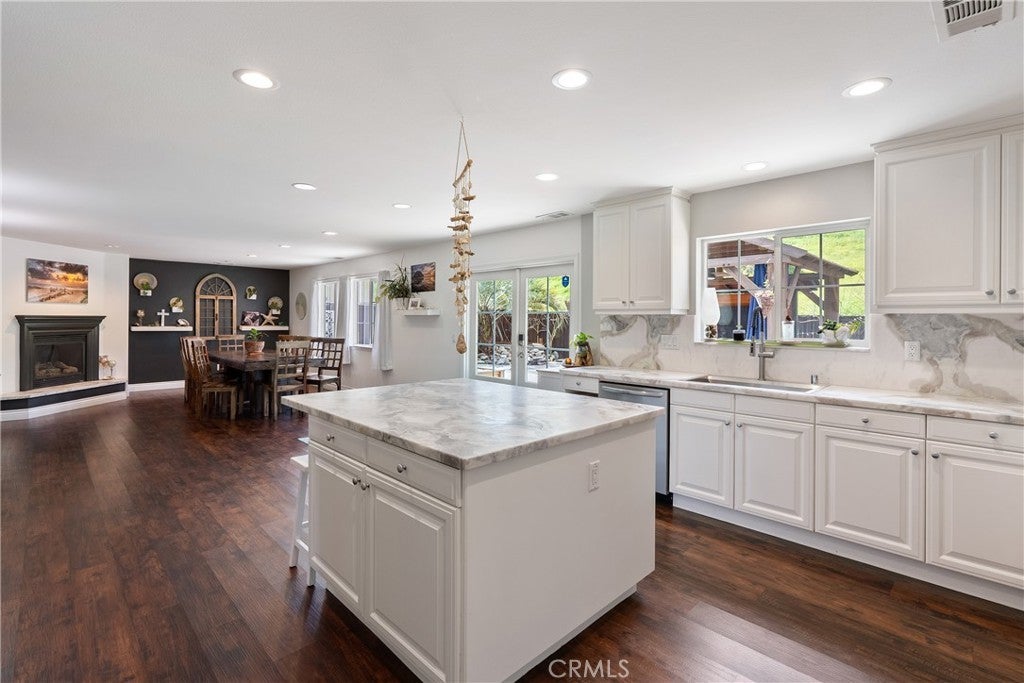 Welcome to one of the most desirable homes in the Dove Creek community of Atascadero. This exceptional residence features the largest floor plan in the development, offering 2,628 square feet of thoughtfully designed living space that combines comfort, style, and modern efficiency. The heart of the home showcases a beautifully upgraded kitchen with leathered marble countertops, creating a refined yet durable surface ideal for both everyday living and entertaining. The elegant fireplace mantle is also finished with matching leathered marble, adding a sophisticated focal point to the main living area. Upstairs bathrooms feature all-natural stone finishes, bringing a spa-like quality to the home’s private spaces. The layout includes four bedrooms and a spacious loft/bonus room, providing flexible options for a home office, media room, or additional living area. French doors open to a thoughtfully designed backyard retreat where a covered gazebo with hardwired electrical creates the perfect setting for outdoor gatherings, dining, or relaxing evenings. Additional standout features include a private indoor sauna, Tesla solar panels for improved energy efficiency, and a backup generator wired directly to the home, offering added reliability and peace of mind.