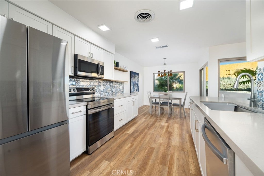 Ready to Rent January 1, 2026 This CHARMING REMODELED 3 Br and 2 BA is located in the quiet community of Westward Isle. Owners have spared no details, as you enter the Condo you walk into the stunning new kitchen with stainless steel appliances, new quartz counter tops, beautiful tiled backsplash, floating wood shelves, new lighting, paint and created an open concept feel. Master Suite has new carpet, paint, wood feature on the wall, access to the patio for early morning or late night relaxation with complete privacy, the Master Bath has new vanity with double sinks, new mirrors, lighting and wall paper accent, new flooring, and paint, on to the spacious living room with new wood flooring, paint and lighting, newer sliding doors to the back patio with amazing mountain views, with plenty of room for entertaining next to the living area is a large Bedroom with built in shelving wall mural that simply articulates this is the Desert lifestyle, new closet, and new barn doors, the 3rd Br has sliders that take you out to the back patio and the Guest BA has new vanity, wallpaper accent, new lighting and paint. This Condo has too many details to mention, close to shopping, restaurants, parks, and Old Town La Quinta!