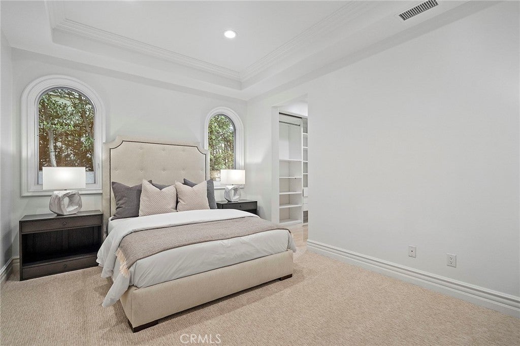 This superbly modernized approximately 7,070 square foot guard-gated Bel Air Crest residence showcases refined materials, exquisite finishes, and impeccable decor throughout. Breathtaking grand entry with a chandelier suspended from the cathedral coffered ceiling welcomes guests to five en-suite bedrooms and six-and-one-half baths offering the epitome of luxury and elegance. Enjoy the lavish chef-caliber kitchen with designer-selected appointments, high-end appliances, custom cabinetry, oversized center island, spacious pantry, and ample space to entertain. The formal living room and dining room are ideal for hosting both large crowds and intimate gatherings. An impressive master wing offers a fireplace, dual custom Clive Christian closets, and relaxing spa-inspired bath complete with sauna/steam and beverage station. Three en-suite bedrooms are located on the second floor as well, and one en-suite bedroom and office are conveniently located on the main floor. Discover tranquil grounds that are beautifully landscaped and highlighted by an outdoor patio, pool, and spa. Don’t miss the exceptional quality and rare beauty that is being offered in the coveted guard-gated community of Bel Air Crest.