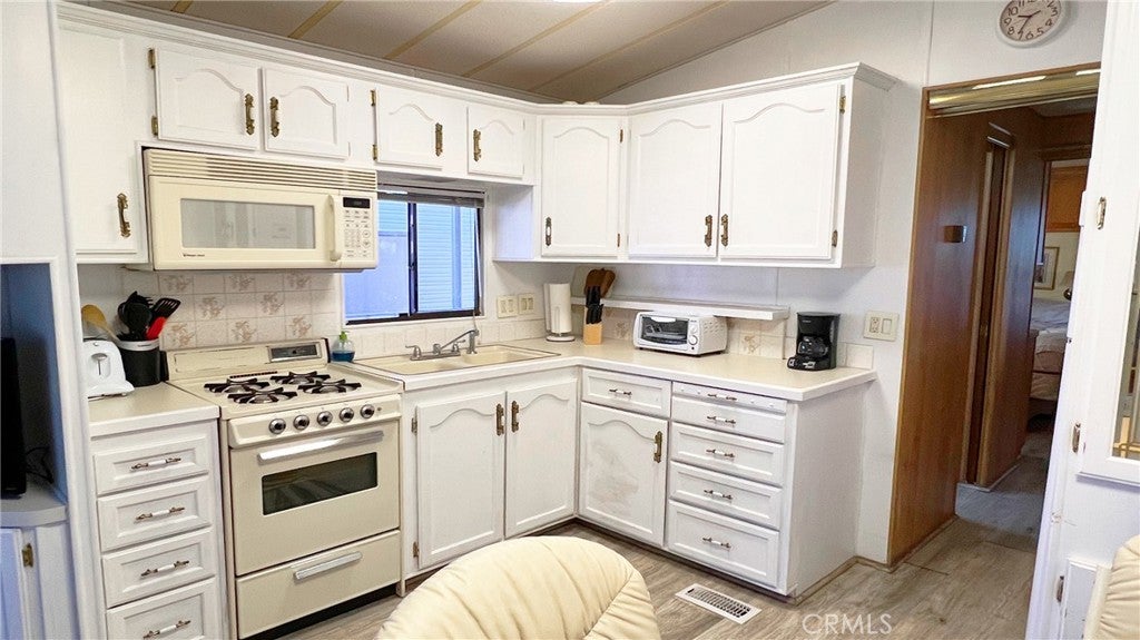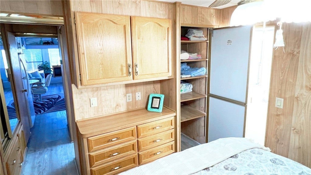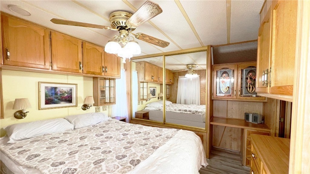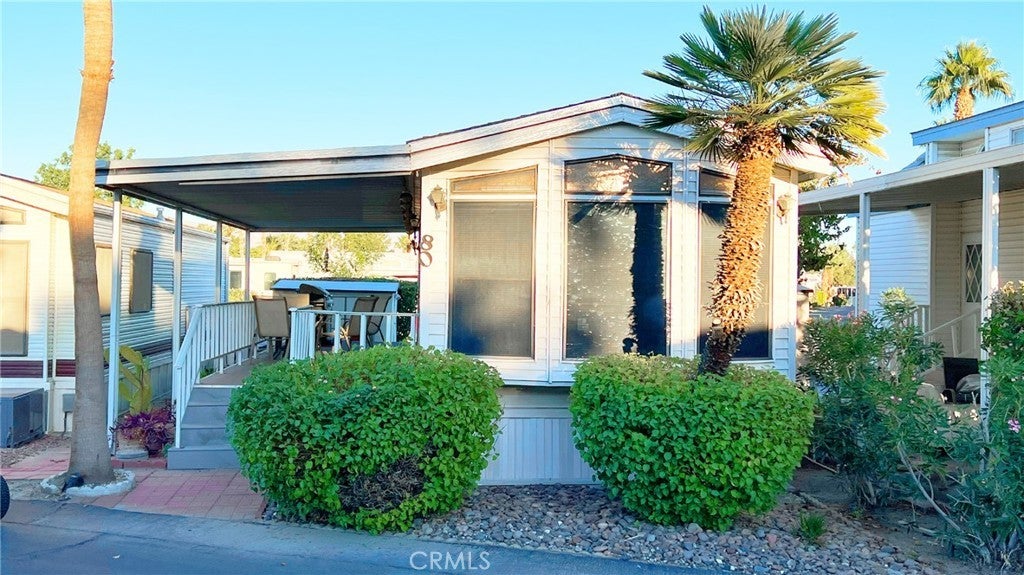 Here is your chance to get into the Palm Springs market affordably where you own the land! Super cute park model that makes great use of the foot print because of its' well thought out floor plan! The front living area is open to the u-shaped kitchen conveniently hugging the corners, leaving a lot of room for the furniture you want and need to be comfortable. A nook for your TV offers cabinets above and below. There is even an unassuming hutch to store wine glasses, crystal and other knick-knacks. You will be amazed at the amount of storage space in this unit! There is a full sized kitchen pantry, as well as a large closet and drawers in the hallway across from the bathroom. And there are 3 more closets in the bedroom, a built-in desk area and multiple dresser drawers! A queen-size bed fits easily into this space. Oh yeah - there are more storage cabinets above the bed! There is an elevated patio the full length of the unit so you can enjoy the outdoor ambience the Palm Springs area is known for. There is an oversized shed to house your tools, bicycles, etc. If desired, a California room could be added to make this home even more comfortable for your resort living. Won't last long - see it now! Amazing amenities in this fabulous oasis! 2 large & well-maintained clubhouses plus 3 additional satellite clubhouses, An indoor pool with a large spa and sauna, An olympic-size lap pool, A total of 6 pools, 5 spas and 3 saunas, Sunken, lighted tennis courts, 8 Pickleball courts, An indoor shuffleboard pavilion, 16,000-square foot San Jacinto room with floating hardwood dance floor, and a professional stage, plus a large kitchen, A 3,000-square foot “Our Gang” party room and lounge with a giant fireplace and kitchen, A huge party terrace with mountain views, A fully equipped fitness center, A dance studio, Library, Billiards room, Horseshoe pits, Several laundries, restrooms and bath facilities, Card & hobby rooms with Pottery Kiln, A putting green, Organized fitness activities, Daily activities including dances, dinners and entertainment, Wi-Fi and wired broadband Internet access. Close to everything! You Own Land! Grant Deed Lot with Water, Cable, Trash, and common area included in HOA!