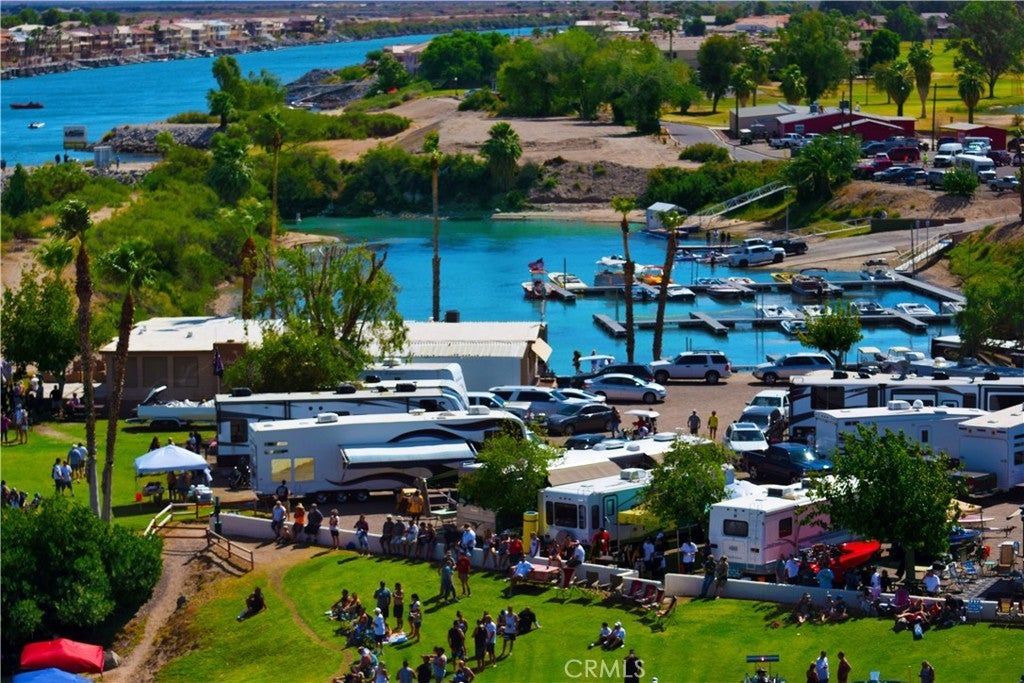 Needles Marina Resort! This 33 acre resort property has so much to offer and is a Rare and Unique Business opportunity located on the sparkling blue Colorado River! This Resorts overall design is well laid out with 239 total sites. This includes 156 RV spaces with full hookups and electrical meters, 76 mobile home spaces with competitive rents with two homes that are reserved for employees. There are 6 camping cabins that offer all the comforts of home. They are air conditioned with full linens and TVs in all 6 cabins. The improvements are not only attractive but functional. There are newly renovated bathrooms and showers as well as a new laundry facility with new washer and dryers that are owned out right by the resort. There are 111 RV/Boat storage units that were built in 2023 that are fully rented with a long waiting list of future tenants. The retail shop offers attractive merchandise as well as fishing gear and tackle , a small grocery store with beer and wine and a deli, a club house with kitchen for fun resort planned events and private offices. There is a brand new pool and spa for the guests to enjoy. The resort also offer a new pickle ball court, a shaved ice hut, dog friendly areas to take your pet along with you. This resort spared no expense to keep its guests entertained year round with a large floating concert stage in one of its private lagoons! There are 48 new large boat slips with a recently dredged marina for larger vessels and easy access on and off the river. There is a floating gas dock that is grandfathered in. The boat ramp has been improved as well. This is one of the few operating marinas that has a pull up gas station on the river! There is plenty of surplus land to build a restaurant and bar over looking the Colorado River! Don't miss out on this truly rare opportunity!