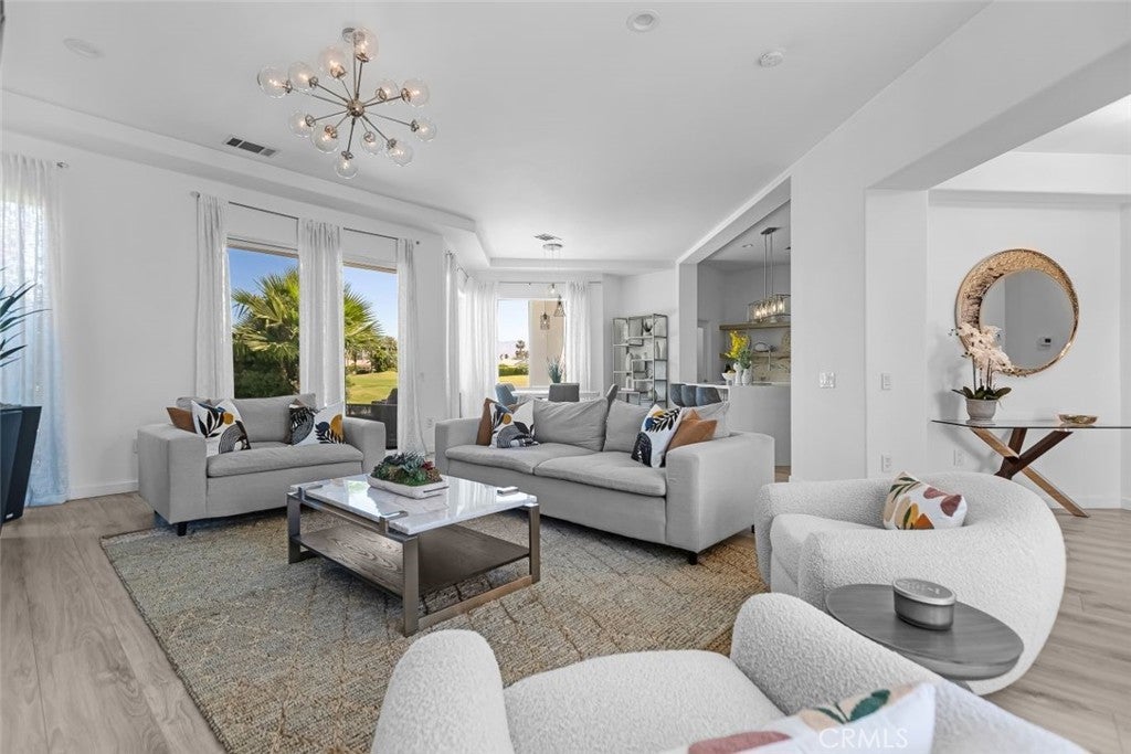 THIS PROPERTY MUST BE LEASED FOR AT LEAST THIRTY (30) CONSECUTIVE DAYS! PLEASE READ as this is the current availability: AVAILABLE MAY 1, 2026 - November 1, 2026 @ $6000/Month. Indulge and treat yourself to the relaxed lifestyle you’ve always wanted in this gorgeous "La Quinta Fairways" luxurious residence! Peacefully set on the 7th green of the Dunes Golf Course at PGA West within the community, this remodeled haven welcomes you to a sun-soaked interior enhanced by neutral hues, lofty ceilings, and appealing luxury vinyl flooring which flows seamlessly throughout the home. Expansive windows lend to the lively atmosphere of the living room, warmed by an inviting tile faced decorative fireplace. Hold intimate gatherings under the glow of the dining area’s stylish chandelier. Bright and modern, the immaculate kitchen equips you with top of the line appliances, crisp white cabinetry, wood floating shelves, walk-in pantry, and sleek quartz countertops throughout, including the three-seater breakfast counter. Truly a tranquil escape, the primary suite showcases golf course & mountain views, a spacious walk-in closet, and a luxurious spa-like bathroom featuring an oversized shower, dual vanity, and soaking tub! Two additional secondary bedrooms are located down the hall - one offers an ensuite layout with a queen size bed and the other hosts two twin beds. The chic hall bath has a walk-in shower. Other notables are inside laundry room with utility sink, epoxy garage floor, brand new zoned heating and air conditioning. Outside, entertaining is effortless in the resort-inspired backyard with multiple sitting areas, pool / spa, and peaceful views! As perks, you’ll have easy access to top-notch golf courses. Within close proximity is Old Town La Quinta with fabulous restaurants, shopping, and Farmer’s Market. La Quinta Resort & Spa is nearby also. Everything you need is at your fingertips. Come for a tour while it’s still available!