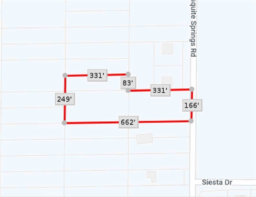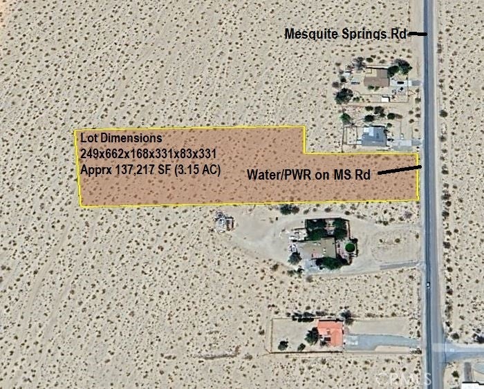The 3.15-acre parcel located on Mesquite Springs Road in the Chocolate Drop area of Twentynine Palms offers a promising opportunity for development. Its strategic position provides unobstructed northern views towards the USMC Logistics Center Base, adding to its appeal. The property boasts a significant 168 feet of frontage on the well-maintained Mesquite Springs Road, enhancing its accessibility and potential value. Zoned for residential use, it allows for the construction of up to four units per acre or a single-family home with an Additional Dwelling Unit (ADU), presenting flexibility for potential developers or homeowners seeking space. The availability of water along the street front and power access at the northeast corner of the parcel further contributes to its readiness for development, making it an attractive option for those looking to invest in or create their desert oasis. Financing for a One-Time Close (buy, build, convert to a 30-yr mortgage all-in-one) Loan is available! Call/Email for details and access to our preferred lenders. ****NO PROPERTY ADDRESS HAS BEEN ASSIGNED FOR THIS PROPERTY. Numerical is part of the APN.****