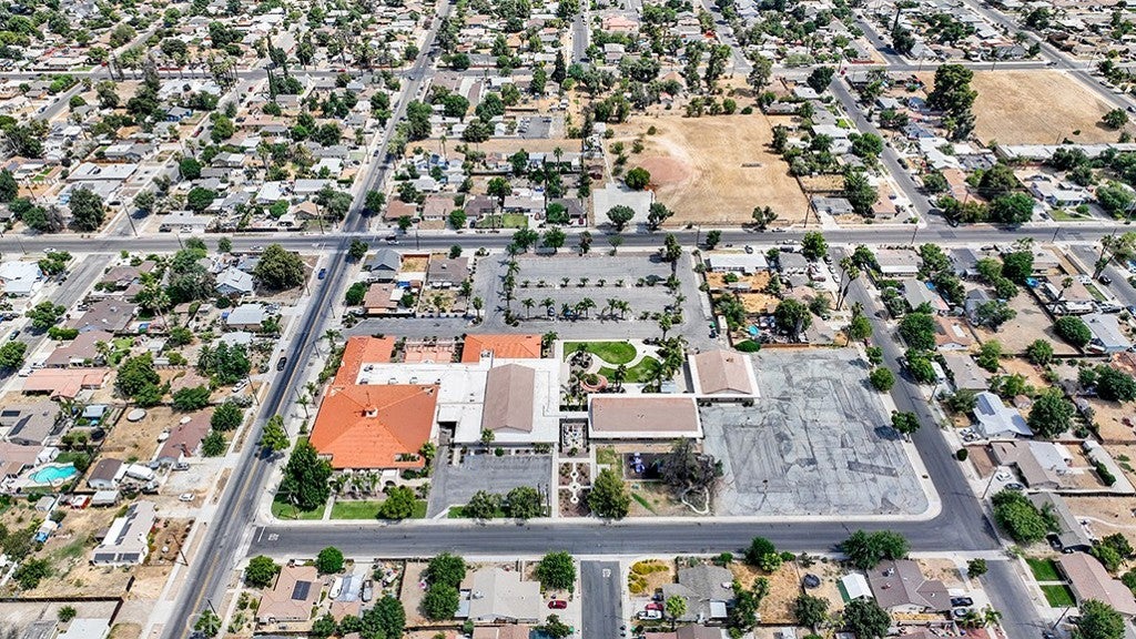 REDUCED! Unique opportunity to purchase 5.49 acres with in-place facilities in a desirable residential area of Hemet. Currently operating as a Church and Zoned S1, the site can utilize the benefits of California SB 4, enacted in 2023 that streamlines housing developments on certain properties and exempts them from environmental review. This applies to sites owned by either religious or educational institutions and must be 100% affordable housing. The law calls for the approval process to take place 90 days after application submission. Surrounded by R1 residential properties the site currently includes 5 buildings totaling 41,403 sf with parking for 223 vehicles and landscape improvements. The property has 296 feet of frontage to Buena Vista Street, 597 feet of frontage to Wesley Place, 230 feet of frontage to Thompson Street and 300 feet of frontage to East Mayberry Avenue with ingress and egress on all four streets surrounding the property. The site is mostly level and slightly above street grade. Existing improvements include planters, fountain, patios and concrete walkways and greenbelt with multiple structures. The property remains an operating religious facility therefore all site tours must be coordinated through the listing agent in advance. There is no For Sale sign on the premises. Property is sold in As-Is condition. Visit www.600emayberryave.com