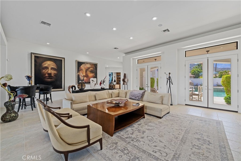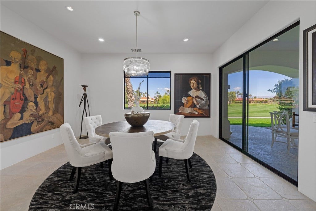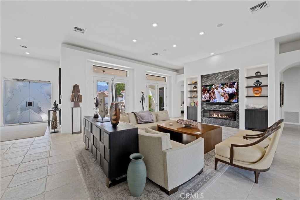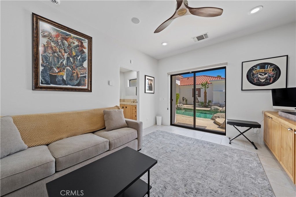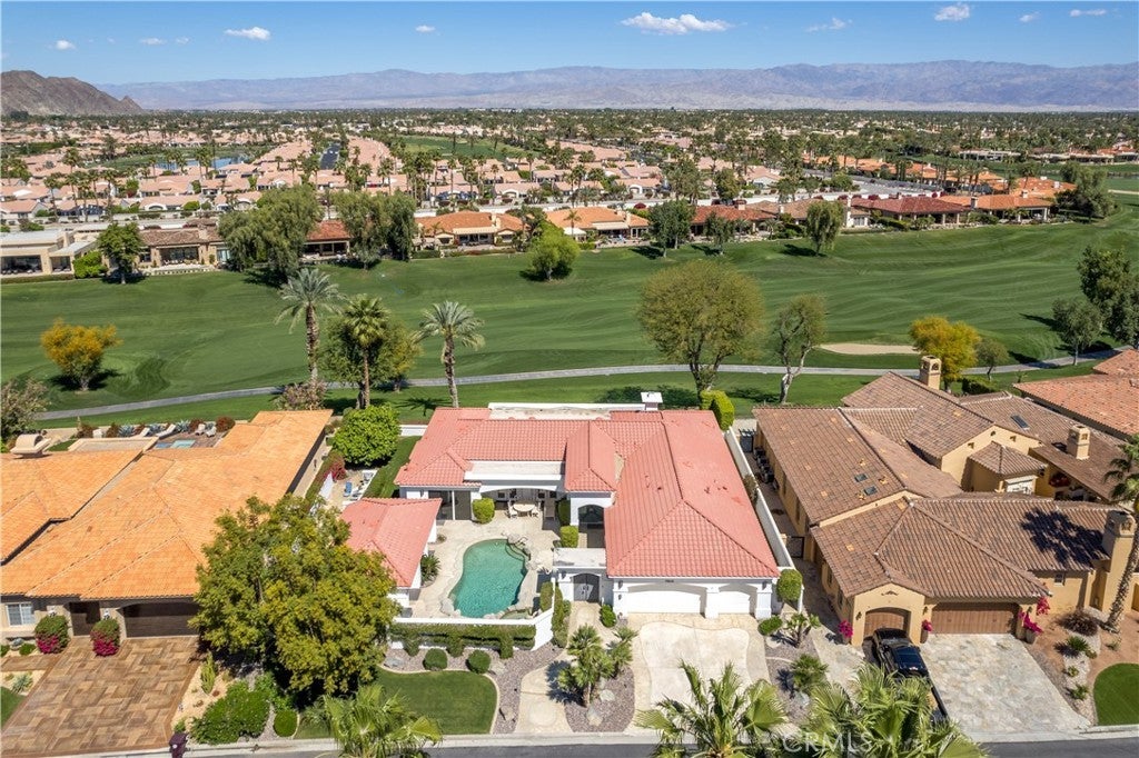 30-day minimum rental. Welcome to your desert oasis nestled within the prestigious Citrus County Club in La Quinta. This exquisite 4-bedroom, 3.5-bathroom home offers unparalleled luxury living on the 5th fairway of the Pete Dye Course and offers a sprawling golf course landscape. This light, airy and bright, custom home takes advantage of the South, West and North East exposure. Step inside to discover a haven adorned with beautiful artwork, enhancing every corner with elegance and charm. The spacious layout boasts a seamless blend of sophistication and comfort, featuring expansive living areas perfect for entertaining guests or enjoying quiet evenings with family. The gourmet kitchen is a chef's dream, complete with top-of-the-line appliances, gas cooktop, built-in fridge, custom cabinetry, and a generous island for culinary creations. The center island is well located between a dining room area facing the pool and courtyard and a formal dining room facing the golf course views. Retreat to the serene master suite, where relaxation awaits amidst panoramic views of the surrounding fairway greenery. Pamper yourself in the spa-like ensuite bath, featuring lavish amenities and a rejuvenating soaking tub. An additional en suite bedroom in the main house offers ample space and privacy for family members or guests. There is an office as well as a powder room in the main house. The other two guest bedrooms are located n the casita which have a jack and jill bathroom. These bedrooms have their own entry and open directly onto the courtyard with views of the beautiful salt water pool, spa and fountain. The courtyard has a built in BBQ and faces south, offering a panoramic view of the Santa Rosa mountains and optimal sun tanning conditions all day long. The three car garage has an epoxy floor. Embrace the quintessential desert lifestyle on your private patio overlooking the manicured fairways. Bask in the warm sun, dine al fresco under the stars, or simply unwind in the tranquil ambiance of your outdoor sanctuary. With access to world-class golf courses, upscale dining, and vibrant entertainment just moments away, this home embodies the epitome of luxury desert living. Don't miss your opportunity to experience the ultimate retreat in La Quinta. Bed Summary: 2 Kings, 1 Queen, 1 Sleeper Sofa. Sleeps 8.