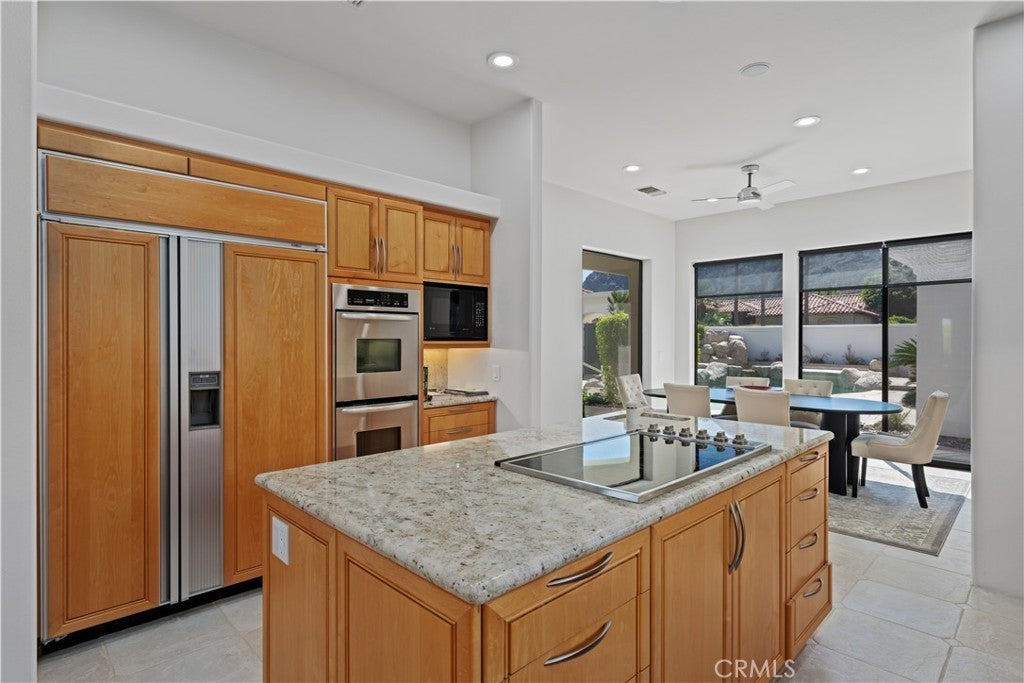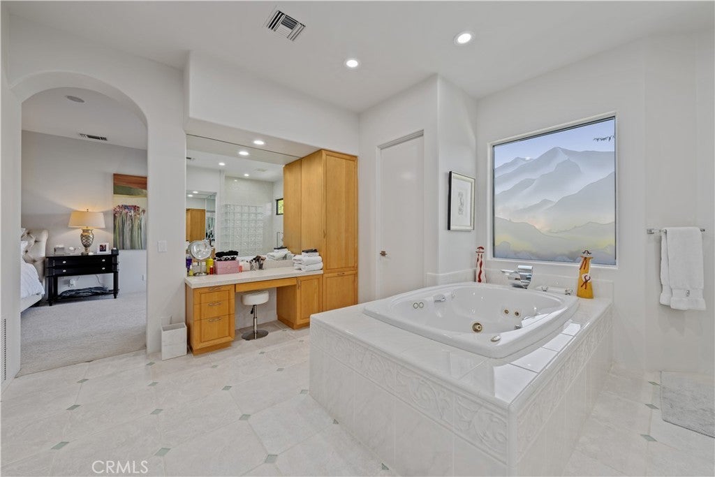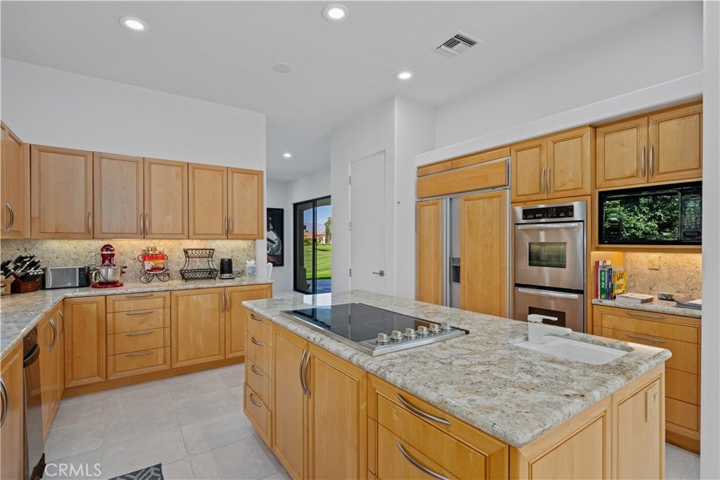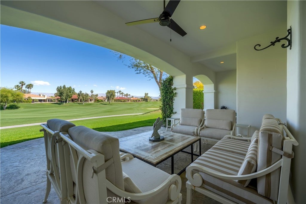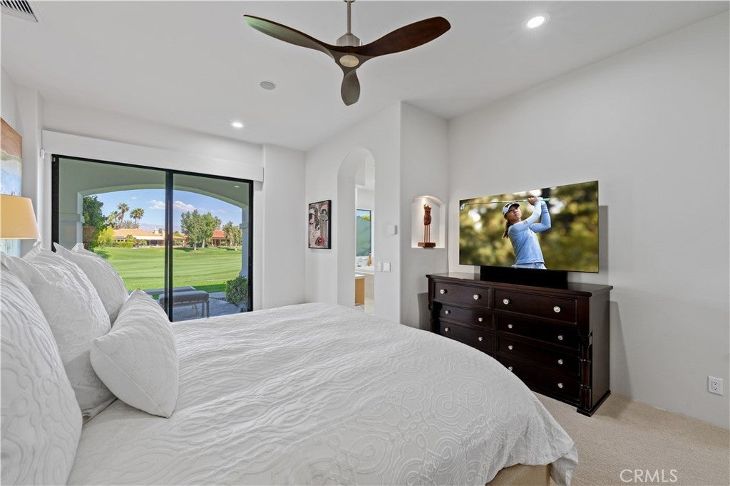 30-day minimum rental. Welcome to your desert oasis nestled within the prestigious Citrus County Club in La Quinta. This exquisite 4-bedroom, 3.5-bathroom home offers unparalleled luxury living on the 5th fairway of the Pete Dye Course and offers a sprawling golf course landscape. This light, airy and bright, custom home takes advantage of the South, West and North East exposure. Step inside to discover a haven adorned with beautiful artwork, enhancing every corner with elegance and charm. The spacious layout boasts a seamless blend of sophistication and comfort, featuring expansive living areas perfect for entertaining guests or enjoying quiet evenings with family. The gourmet kitchen is a chef's dream, complete with top-of-the-line appliances, gas cooktop, built-in fridge, custom cabinetry, and a generous island for culinary creations. The center island is well located between a dining room area facing the pool and courtyard and a formal dining room facing the golf course views. Retreat to the serene master suite, where relaxation awaits amidst panoramic views of the surrounding fairway greenery. Pamper yourself in the spa-like ensuite bath, featuring lavish amenities and a rejuvenating soaking tub. An additional en suite bedroom in the main house offers ample space and privacy for family members or guests. There is an office as well as a powder room in the main house. The other two guest bedrooms are located n the casita which have a jack and jill bathroom. These bedrooms have their own entry and open directly onto the courtyard with views of the beautiful salt water pool, spa and fountain. The courtyard has a built in BBQ and faces south, offering a panoramic view of the Santa Rosa mountains and optimal sun tanning conditions all day long. The three car garage has an epoxy floor. Embrace the quintessential desert lifestyle on your private patio overlooking the manicured fairways. Bask in the warm sun, dine al fresco under the stars, or simply unwind in the tranquil ambiance of your outdoor sanctuary. With access to world-class golf courses, upscale dining, and vibrant entertainment just moments away, this home embodies the epitome of luxury desert living. Don't miss your opportunity to experience the ultimate retreat in La Quinta. Bed Summary: 2 Kings, 1 Queen, 1 Sleeper Sofa. Sleeps 8.