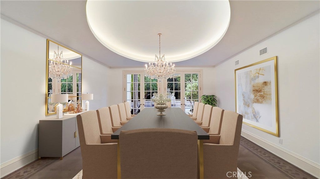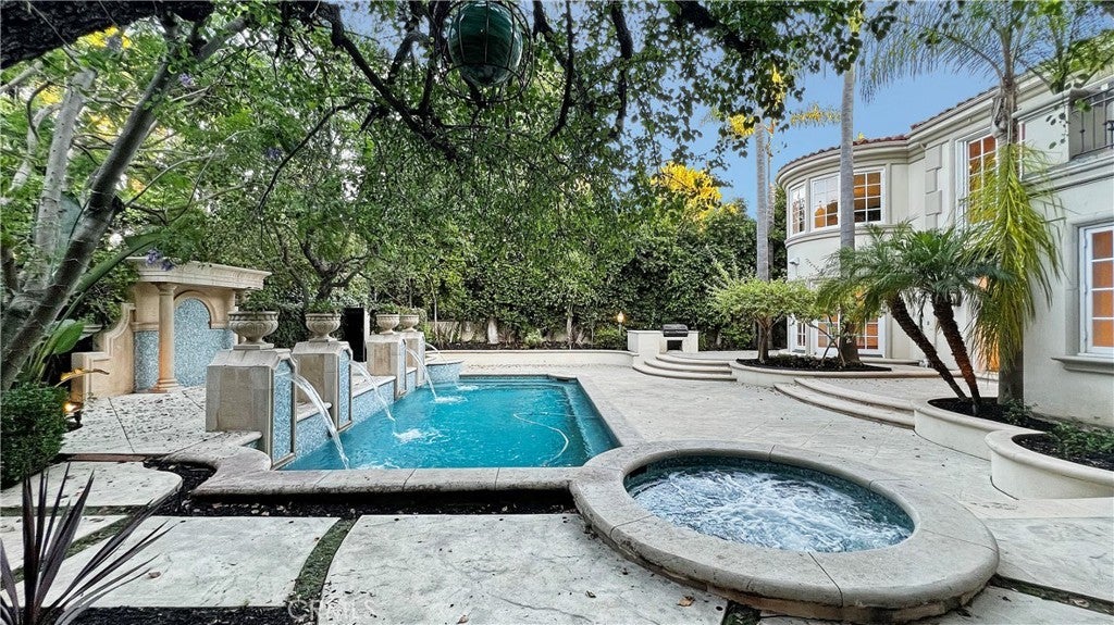 Discover the Pinnacle of Beverly Hills Living Welcome to the epitome of luxury living in the heart of Beverly Hills, where opulence meets sophistication in the prestigious 90210 lifestyle. This gated Mediterranean estate, stylishly refreshed in 2024, spans an impressive approximately 7,400 square feet, offering six spacious bedrooms and five-and-one-half bathrooms on a grand roughly 16,450 square foot lot. The grand two-story entry, featuring a sweeping staircase and skylight, sets the stage for elegance. The formal living room, with its stunning fireplace and Palladian windows, exudes sophistication, while the richly paneled oak library with walnut floors offers a cozy retreat. The inviting family room seamlessly opens to the pool area and beautifully landscaped gardens, perfect for indoor-outdoor living. Culinary enthusiasts will love the gourmet kitchen with its huge center island, Wolf appliances, and ample cabinetry. Adjacent to the kitchen is a convenient maid's quarters featuring a washer, dryer, two bedrooms, a bathroom, plus a separate staircase leading to the second floor. The formal dining room, comfortably seating 12 guests, is ideal for grand entertaining. Upstairs, the master suite is a serene sanctuary with a sitting room, cozy fireplace, and expansive master bath, plus three large bedroom suites, ensuring plenty of space for everyone. The outdoor oasis features a sparkling pool, multiple seating areas, and lush gardens — perfect for relaxing and entertaining. Recent updates include freshly painted interiors and exteriors, new carpet throughout, and upgraded Wolf kitchen appliances. Located on the world-famous Rodeo Drive, the estate provides easy access to world-class shopping, dining, and entertainment. Experience modern elegance and luxurious comfort in this magnificent Beverly Hills estate. Please note that some images have been virtually staged to showcase the potential of the home.