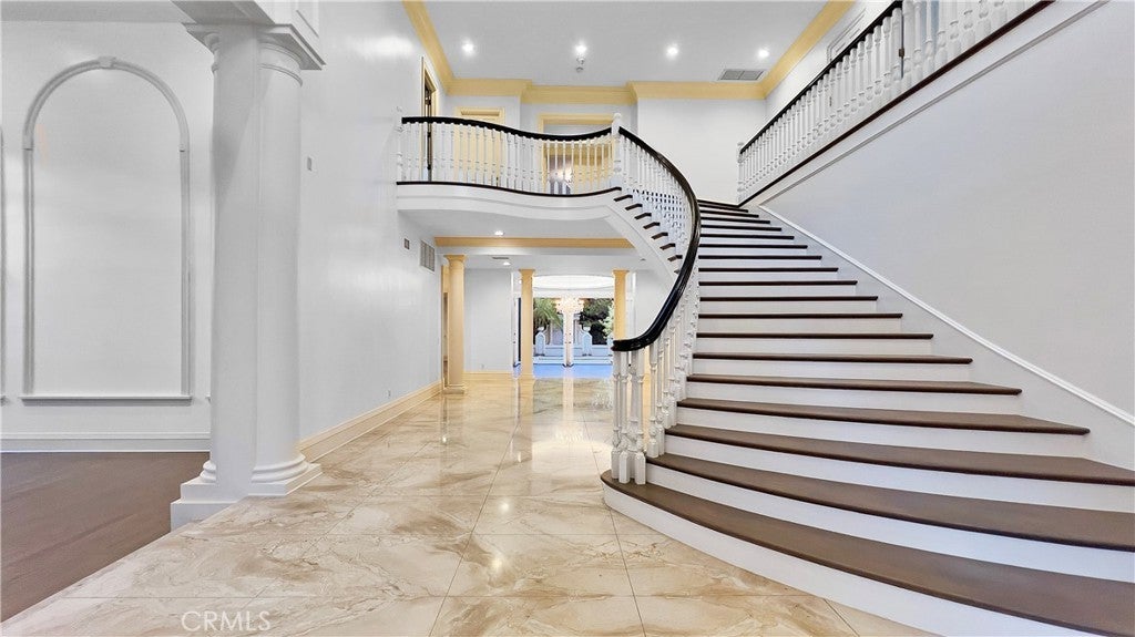 Breakfast Bar, Separate/Formal Dining Room, High Ceilings, Pantry, Bedroom on Main Level, Walk-In Pantry, Walk-In Closet(s), Balcony, Breakfast Area, Cathedral Ceiling(s), Entrance Foyer, Multiple Staircases, Recessed Lighting, Stone Counters, Track Lighting, Two Story Ceilings