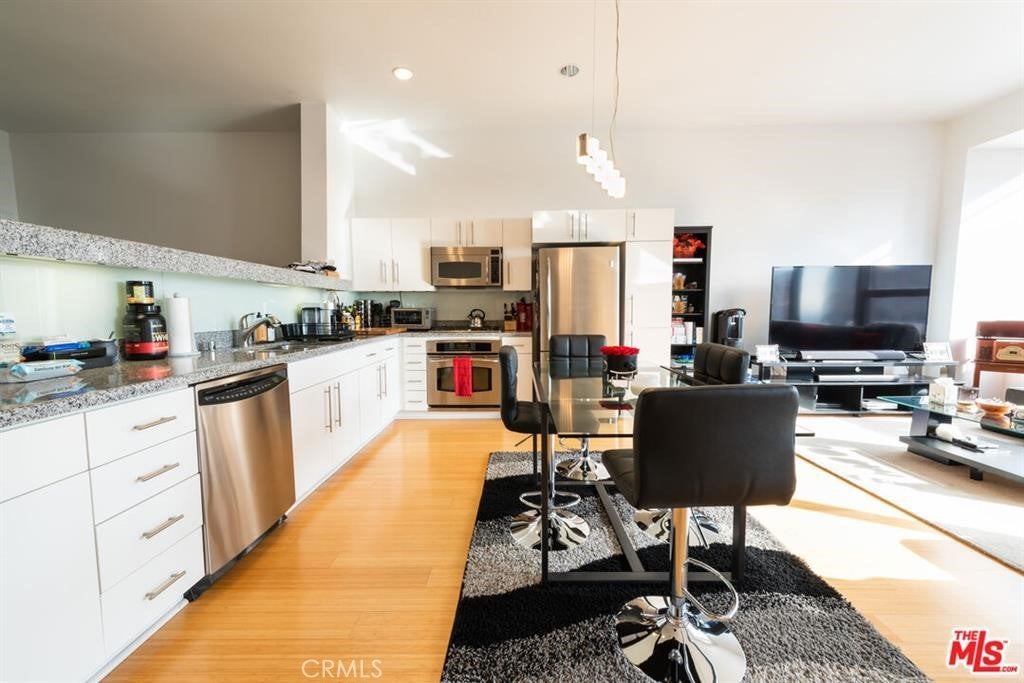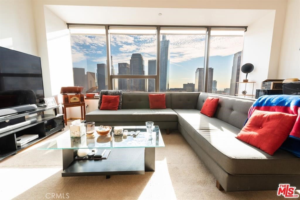 Included in the sale are four adjacent assigned parking spaces within the building! Perched on the 26th floor, this luxurious 1-bedroom loft offers breathtaking views of Downtown Los Angeles. Located in the prestigious 1100 Wilshire building, the unit features a European-style kitchen with stainless steel appliances, white cabinets, granite countertops, and a gas range. The bedroom is elevated and comes with a spacious walk-in closet. Additional amenities include in-unit washer and dryer, hardwood flooring throughout, and carpet in the bedroom. 1100 Wilshire provides an exceptional living experience with 24-hour security and concierge services, a fitness center, media room, and conference room. On the 17th floor, the Sky Deck boasts a heated infinity pool, spa, cabanas, lounge chairs, fire pit, and BBQ grill. This prime location offers easy access to Crypto.com Arena, LA Live, Regal Theaters, The Bloc, Ralph's, Starbucks, Target, Whole Foods, MOCA, Walt Disney Concert Hall, and a variety of Downtown dining and entertainment options. There are two (2) common-area potty areas for dogs. Amazon lockers on the 1st floor, and a self-checkout mini mart. Please note that the loft’s bedroom is not enclosed.