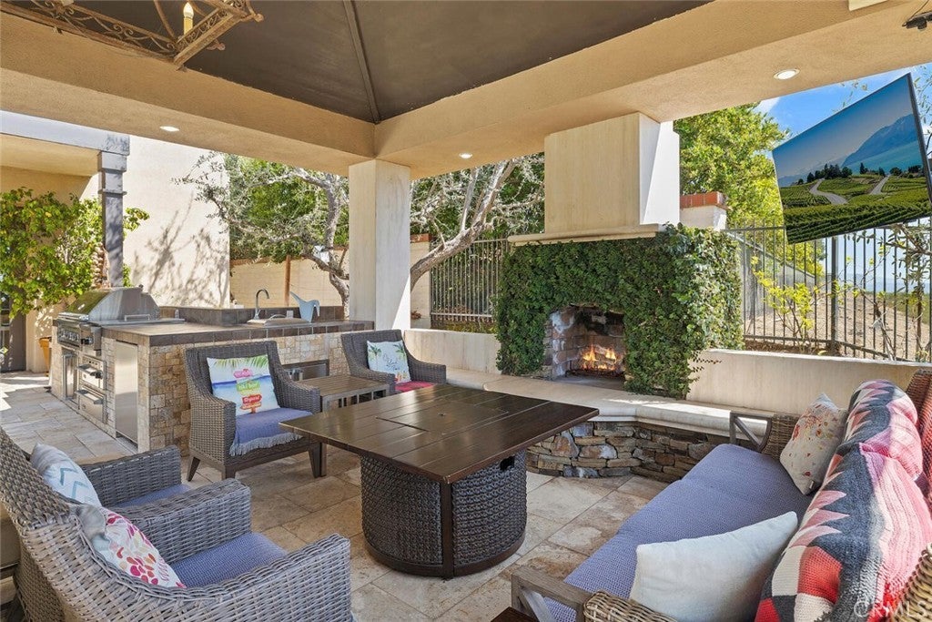 Welcome to 11755 Collar Ave. This luxurious oasis is nestled in one of the most coveted locations within the prestigious 24-hour guard-gated community of Tustin Ranch Estates. This stunning 5,900+ sq. ft. residence offers breathtaking views, mesmerizing sunsets, and picturesque vistas of Catalina Island, all from a peaceful, single-loaded cul-de-sac street. Situated on a sprawling 16,000 sq. ft. lot, the home boasts a seamless blend of elegance and privacy. With its spacious layout, upscale finishes, dual staircase, and panoramic surroundings, this estate invites you to experience an unparalleled lifestyle of comfort and sophistication. This former builder’s model home was thoughtfully designed with premium upgrades, offering a luxurious yet comfortable living space. Every detail has been meticulously crafted to elevate the home's elegance, from high-end finishes to custom features, providing an exceptional blend of style and functionality. Whether enjoying the expansive indoor areas or the breathtaking outdoor views, this home delivers an unparalleled living experience. The kitchen is a chef's dream, featuring custom-made cabinetry and ample storage. Equipped with a double oven, built-in refrigerator, and a 6-burner cooktop, this space is designed for both cooking and entertaining with ease. On the first floor, you'll find a primary en-suite, a formal study with a fireplace, a bright family room, a breakfast nook, and a formal living room with an astonishing wood-carved fireplace and cathedral ceilings. A formal dining room and a bar enhance the home's entertainment capabilities. The master suite on the second floor boasts its own viewing balcony, offering stunning ocean and city views. 3 additional en-suite bedrooms & a large playroom cater to the needs of the whole family. The mature front & rear gardens offer a year-round spring-like atmosphere. Additional amenities include a covered patio with stone fireplace, overhead heaters, a ceramic-tiled swimming pool, hot spa, and a fully equipped BBQ area offering a massive grill. The long driveway provides parking for multiple cars. The gold-ribbon award-winning schools, world-class dining and shopping, John Wayne Airport, and freeways are all in close proximity.