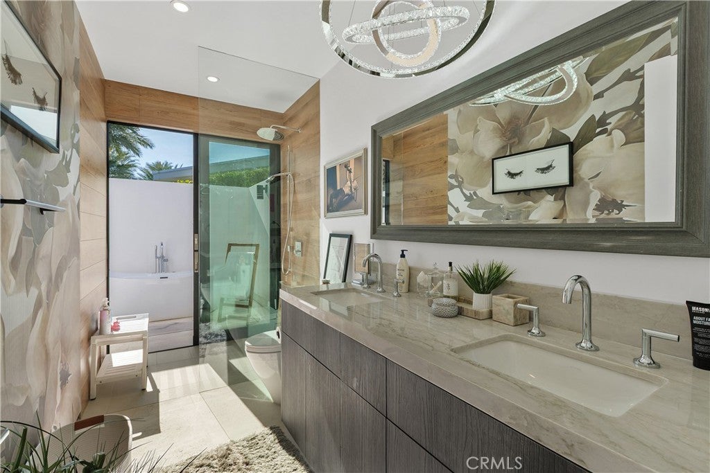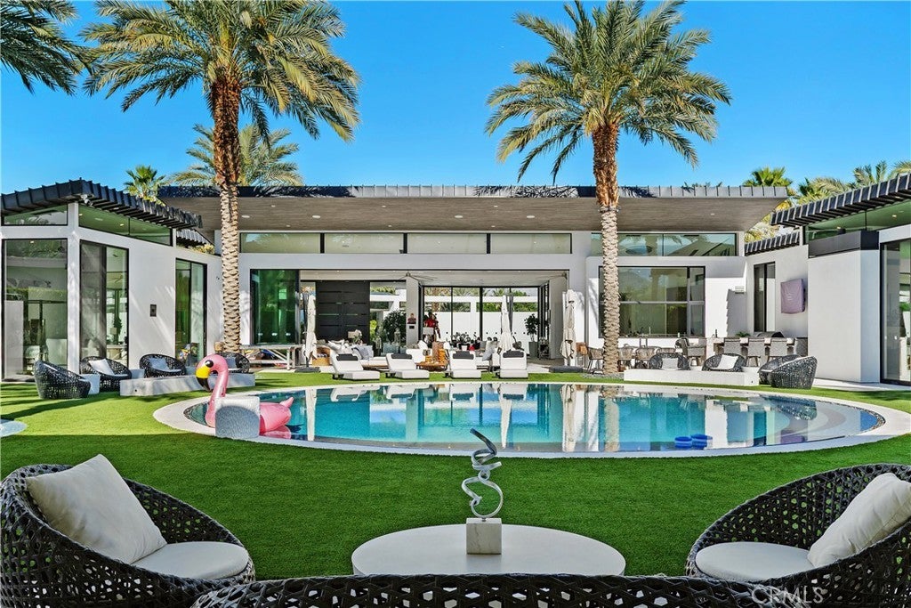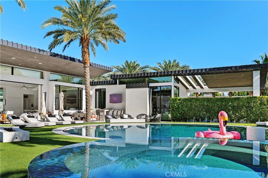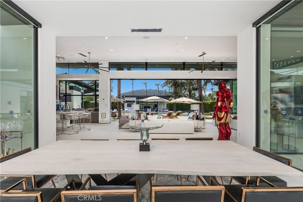Introducing 8 Makena, An Architectural Masterpiece that is the premiere trophy property in the development that blends futuristic design with mid-century modernist aesthetics, inspired by the legendary architect Joseph Eichler. Dubbed the "Desert's Iron Man House", this private, gated estate is an exclusive oasis for the most discerning clientele. Set on over half an acre of meticulously manicured grounds, this 4,702-square-foot marvel offers a one-of-a-kind living experience in the prestigious enclave of Rancho Mirage, just moments from the fine dining and luxury shopping of El Paseo. With soaring ceilings up to 20 feet, floor-to-ceiling glass walls , no interior steps , limestone flooring throughout and expansive free flowing open spaces, this home captures 270-degree vistas of the stunning Santa Rosa Mountains, bathing the southwest-facing outdoor spaces in dramatic sunset views. The distinctive round arc reactor pool and expansive outdoor entertainment areas fulfill every desire, making this estate ideal for grand gatherings or intimate family moments. Inside, the residence boasts spacious living areas designed to entertain, including a luxurious primary suite with mountain views, a large walk-in shower, and a soaking tub. A separate, fully equipped casita adds a private retreat for guests or extended family, complete with its own kitchenette, bath, and outdoor living space. The home's strategic design harmonizes opulent indoor spaces the graciously tie in the outdoor living areas to be ONE, featuring a James Bond-worthy relaxation pavilion, bar, and barbecue area, perfect for the entertainer at heart. Whether lounging by the rim-flow pool, enjoying an outdoor shower, or relaxing in the suite's outdoor bath under the summer stars, this residence delivers an unparalleled experience. With a two-car garage, two-car carport, and close proximity to private jet charters, this estate offers the ultimate in convenience and luxury. 8 Makena is the epitome of architectural excellence, a world-class sanctuary ready to elevate any portfolio.