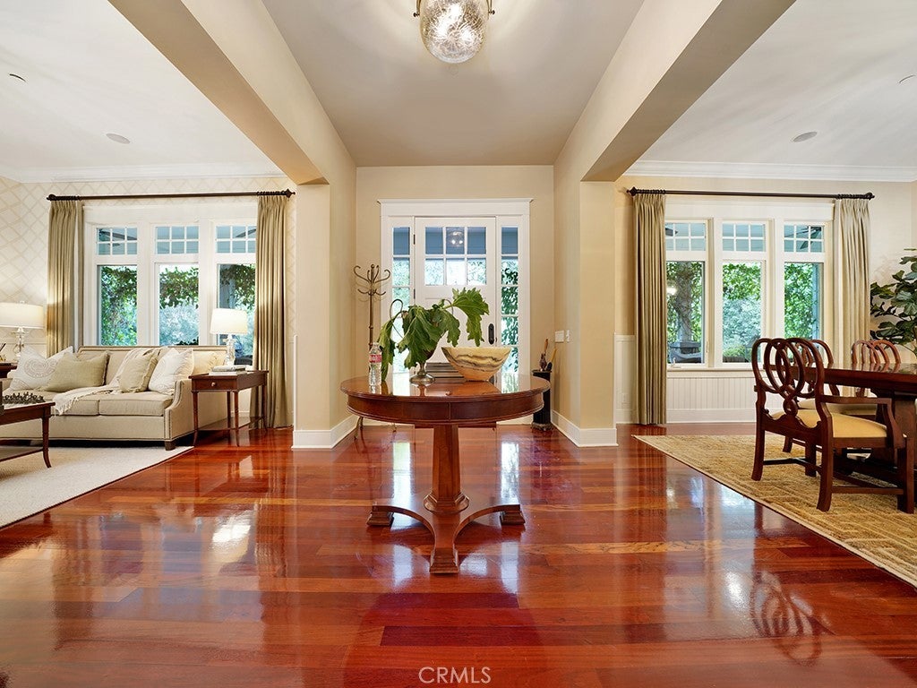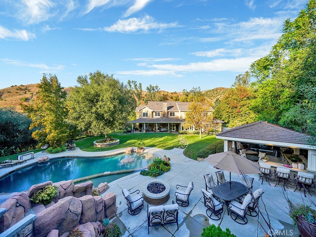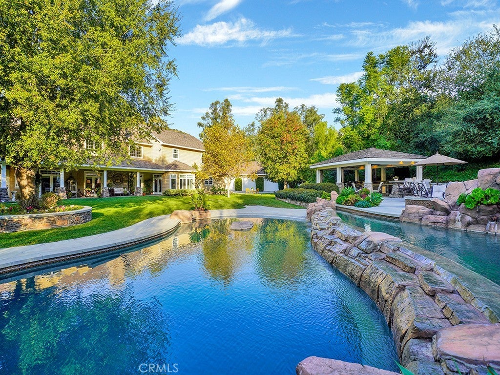Nestled on 11 picturesque acres in the heart of Orange County this extraordinary estate offers unparalleled privacy and endless opportunities for recreation and entertainment. For the automobile enthusiast, this estate is unmatched featuring a detached 12 car garage, (along with a 3 car garage attached to the main residence) providing ample space for showcasing and maintaining a prized collection. The outdoor spaces are nothing short of spectacular, with a resort-style, multi-level tiered pool, spa & water-slide serving as the centerpiece of an oasis-like backyard. A charming gazebo offers a serene retreat for dining, relaxing and entertaining, all surrounded by lush landscaping that creates a private paradise. Upon entering this five-bedroom, three-and-a-half bath residence you are immediately greeted by a sense of warmth & grandeur. The heart of the home is the spectacular family room, where an oversized rock fireplace serves as a stunning focal point. Built-in cabinetry and shelving frame the space, creating the perfect setting for a state-of-the-art entertainment system and a wall of sound that enhances every gathering. A stylish bar completes the family room making it an entertainer's dream. Additionally the downstairs presents a chef's kitchen, breakfast nook, the dining room, living room, office and en-suite guest bedroom. Take one of two staircases to the second floor where two guest bedrooms, full bathroom, a large bonus room, another bedroom, (currently configured as a workout room), the laundry room and the grand primary suite all reside. The grand primary suite is a true retreat, offering a perfect blend of elegance and comfort. Anchored by a cozy fireplace, the suite features a seating area and a private balcony. The luxurious primary bath is designed to pamper, boasting spa -like finishes, dual vanities, a soaking tub, separate shower and the large walk-in closet. Backyard amenities include large manicured lawn spaces, an orchard, playground, stunning pool, spa, outdoor dining area, fire-pit, multiple seating areas. Additional garage amenities are heating, air conditioning, 200 pound compressor with multiple air fitting stations and 3 lifts. This property is a must see!!!