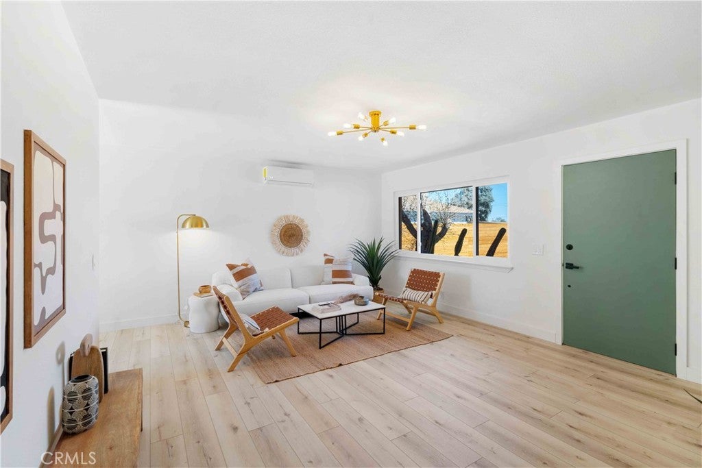 Beautifully renovated 2 bedroom, 2 bathroom home situated on a 6750 sq ft lot. Open floor plan design renovated from top to bottom with new floors, new kitchen appliances, quartz countertops, new windows throughout, sliding glass doors, new A/C, plumbing and elctrical. Great location in Joshua Tree Village 10 inutes from Joshua Tree park, short distance to shops and restaurants.