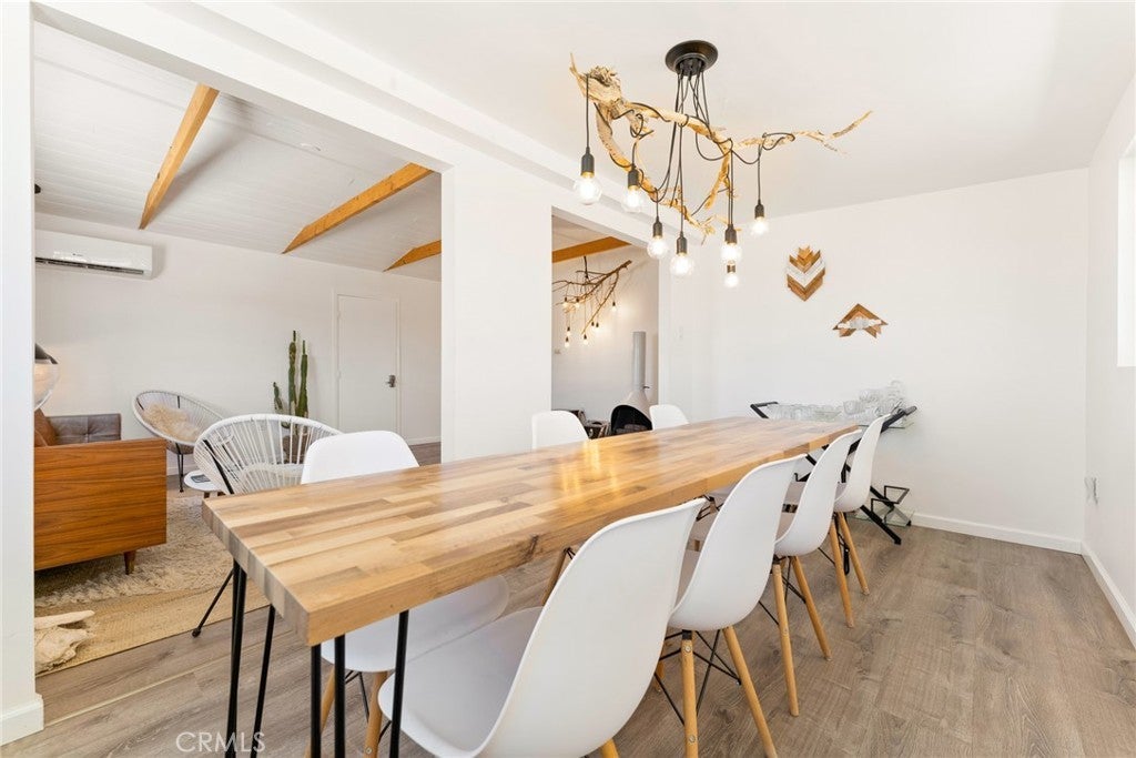 ** HUGE PRICE DROP ** PRICED TO SELL! ** Looking for a gorgeously renovated Joshua Tree classic on 5 acres? Look no further. White Moon Ranch has been a guest favorite on Airbnb for over 5 years. Property can be sold fully furnished with all designer touches, furnitures and supplies in place. New roof, new septic, new water heater, gut renovated with mini splits, a huge storage closet and a fully finished detached garage. Electric panel is upgraded plus a mini electric panel in the garage with its own heating and cooling. Garage is currently set up as a detached suite but would make a really cool game room or possible ADU with a wall of glass sliders! The lot to the east is government land and this is just a few lots away from endless Northern views. The stars and moons here are EPIC! This house has it all: hot tub, cowboy tub, Edison lights, hammocks, grill, candy colored sunsets and wild bunnies. There is a popular "cowboy" mini golf and outdoor bowling lanes on the property as well! You can upgrade the course or use your own imagination for new amenities. This is one to see in person, it has beautiful designer lighting and an open layout great for groups and lots of natural light. White Moon Ranch is ready for a new owner to add their own touches, expand with a pool, add a glass dome or possibly subdivide into two 2.5 acre lots and build. (Buyer to do their own due diligence.) This location has the remote dirt road, off grid vibes that are so incredibly popular in Joshua Tree while being completely on grid. Bring your creativity and imagination and come be the next steward of this popular desert ranch. * Important * Driving Directions * From Pole Line, North on Wilson, stay left when Wilson forks, Left on Brant Crossing Right on Bluegrass.