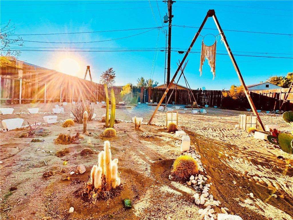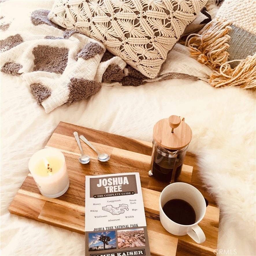 ** Price Reduction! ** Ready to SELL! ** This charming boho bungalow in the heart of Joshua Tree village is all about design and location, location, location! Walk to JT Saloon, the Joshua Tree Trading Post and all of the brunch, jazz and shopping spots in JT Village! "White Cactus House" is a modern bohemian oasis in Joshua Tree Village, just minutes to the park. Curated perfectly in the classic popular boho scandi signature style of Joshua Tree. This charming bungalow was one of the original Airbnbs in Joshua Tree and is perfect to please any savvy investor or LA expat looking to relocate. The yard is fenced and gated with cool reclaimed wood and a GIANT mulberry shade tree which provides rare, glorious shade in the summer! The electric panel was recently upgraded and a new hot tub added. Septic has been replaced and new HVAC was recently installed. House has a large storage closet and is the perfect size for small romantic getaways. Yes, it has all your typical short term rental amenities, hammocks, grill, and cool sculpture tipis in the yard representing the 4 elements, strung with solar twinkle lights that guest's love! White Cactus House has been a guest favorite on Airbnb for over 6 years with a dug in cowboy pool featured in several articles and blogs of Joshua Tree. Come see this Joshua Tree classic and make an offer today! House can be sold fully furnished with all furniture, appliances, linens, art, design items and supplies included. No seller Carry. Buyer to verify permits, square footage and all other information.