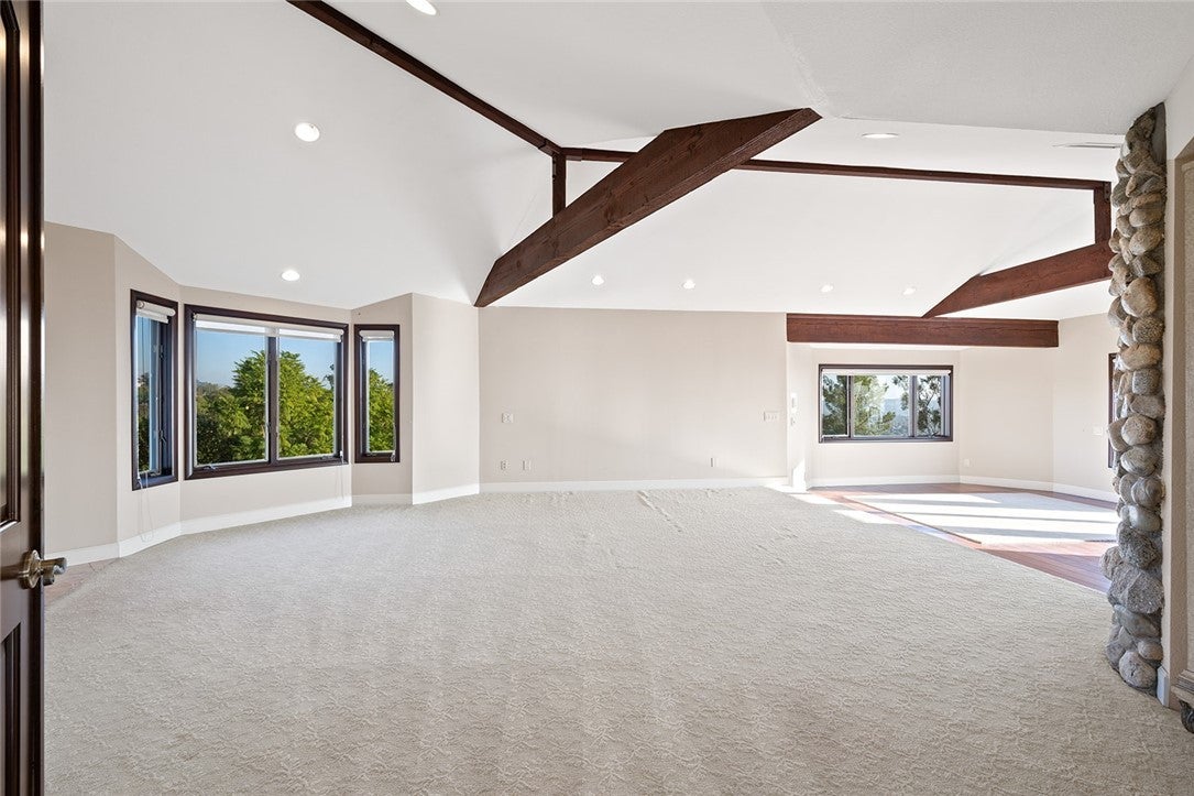 Beamed Ceilings, Bedroom on Main Level, Breakfast Area, Cathedral Ceiling(s), Central Vacuum, Eat-in Kitchen, Entrance Foyer, Granite Counters, High Ceilings, Main Level Primary, Open Floorplan, Pantry, Primary Suite, Recessed Lighting, Separate/Formal Dining Room, Walk-In Closet(s), Walk-In Pantry, Wet Bar, Wine Cellar