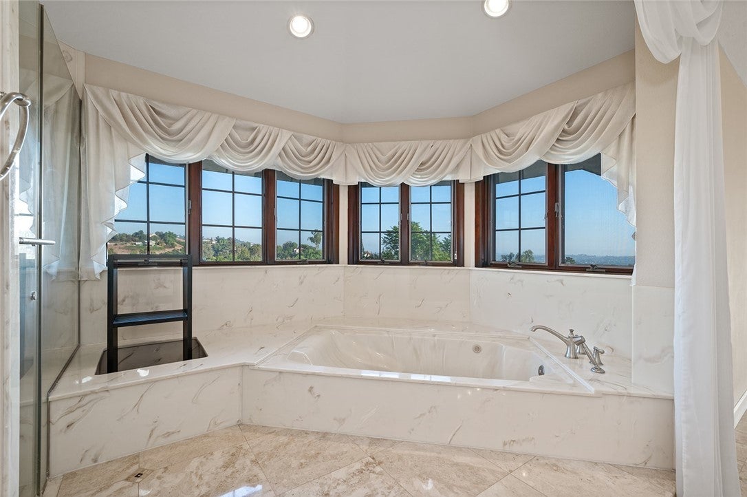 Welcome to your new estate with panoramic 180+ degree views overlooking Los Angeles & Orange County out to Catalina Island. Watch the sun both rise & set from the outdoor patio and balcony spaces. 5 bedrooms, 3 full bathrooms, library, office, wine room, lower level dance studio & 4 fireplaces. Two master suites, one on the main level. More than 5000 square feet of opulence, completely renovated in 2000. Soaring ceilings and open floor plan. 1.5 acres of well landscaped, easy to maintain property, fully fenced with avocado and fruit trees. Less than 25 miles to downtown Los Angeles, convenient to all major freeways. Energy efficient home with newer LG solar panels (2022). Convenient location, quick 1.5 mile drive to Whittwood Town Center, Vons, and many other shops/restaurants. The City of La Habra Heights is known for its spacious luxury properties and lush hillside landscapes. It is also home to the private Hacienda Golf Club.