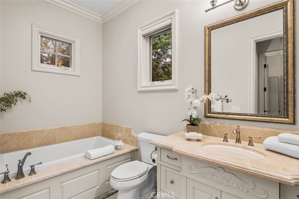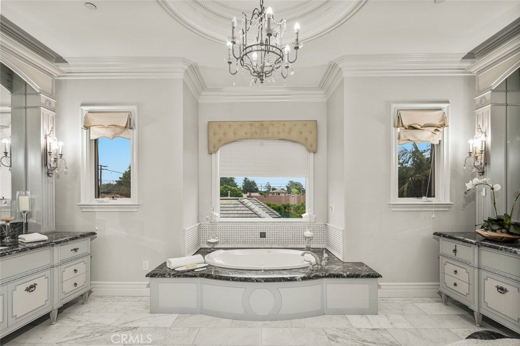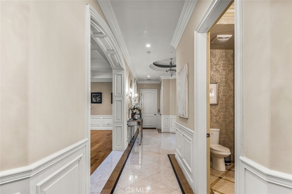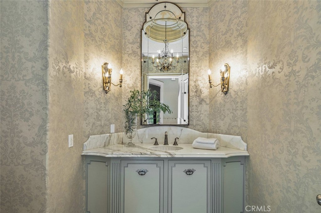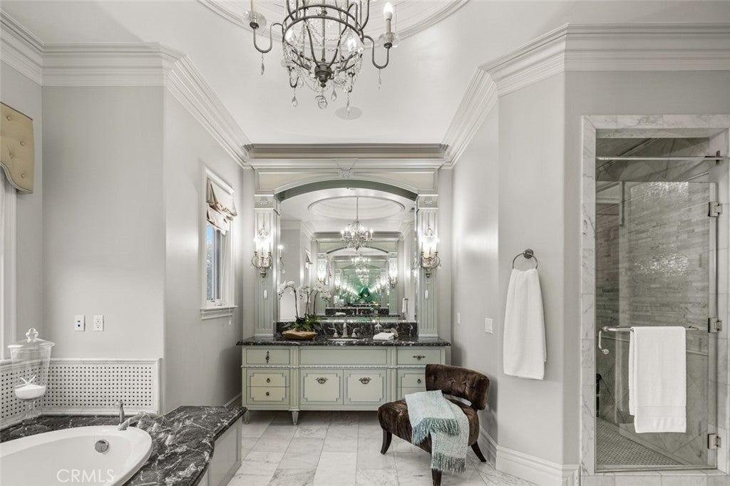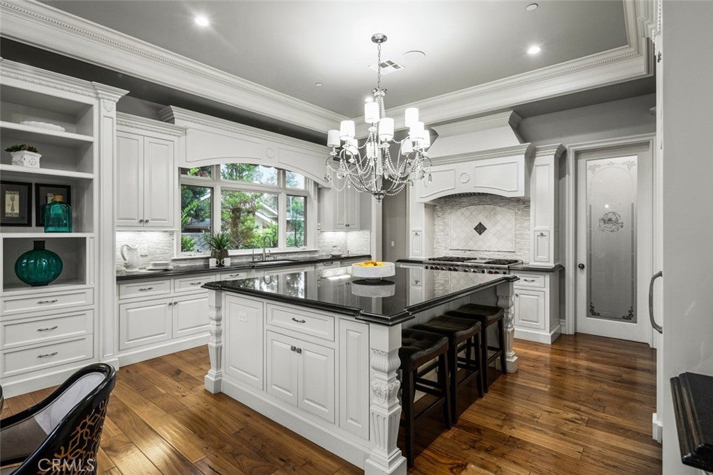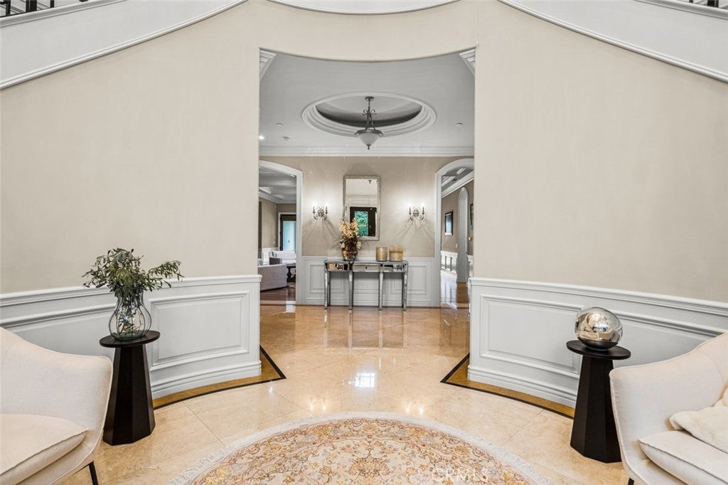Dramatic, distinctive and undeniably radiant, this stunning custom compound situated within its own private gates provides the perfect blend of classic Renaissance-inspired architecture with today’s conveniences and accoutrements. A dramatic two-story formal entry hall sets the tone for the interiors. From there, a series of wonderfully scaled formal and informal rooms unfold before you. Throughout the spacious interiors, the carefully selected finishes contribute to a feeling of quality, warmth, and comfort. Impressive, yet eminently livable, no other home offers such a unique combination of setting, space, and privacy. The house is complemented by over a half acre of stunning gardens, multiple outdoor living areas, a professional tennis court, and a resort-like pool area ideal for entertaining or enjoying the tranquil setting. Totaling five generously sized bedrooms and six and a half baths, the compound also offers amenities such as a full sized movie theater, private gym, and a sizable reception room. Designed without compromise, this offering includes every imaginable amenity in a setting that is private, spacious, and located in one of Southern California's premier communities.