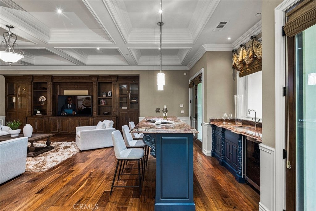 Breakfast Bar, Built-in Features, Balcony, Crown Molding, Separate/Formal Dining Room, Eat-in Kitchen, Granite Counters, High Ceilings, Multiple Staircases, Open Floorplan, Recessed Lighting, Two Story Ceilings, Bar, Bedroom on Main Level, Loft, Primary Suite, Walk-In Closet(s)