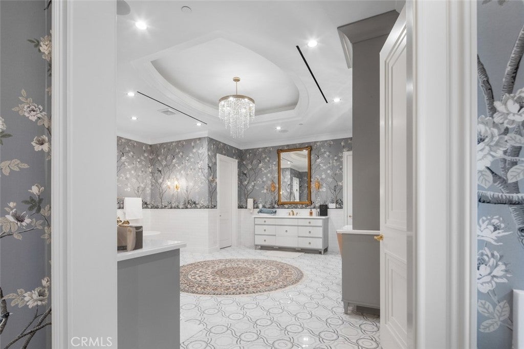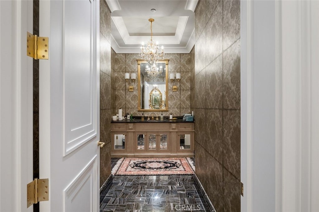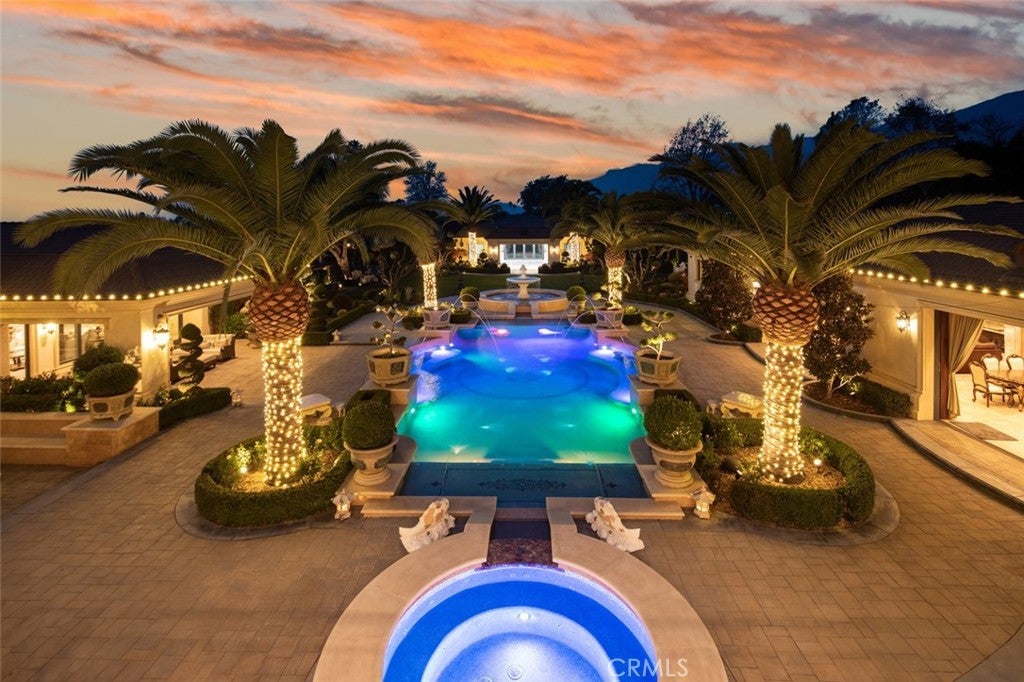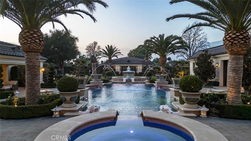 A true estate-style property sited on 2.5 acres, surrounded by an assemblage of accommodations to complement both the structural elements and the sublime natural setting. A Robert Tong concept and design, the compound affords a 15,500-square-foot main residence, refined by a curated selection of exceptional materials and amenities, along with a 2,500 square-foot guest house; a gallery garage with capacity for 20 vehicles; and a spacious cabana – all finished to reflect an elevated living experience. The estate was meticulously designed and arranged in accordance with the principles of Feng Shui, with these guidelines serving as the foundational framework for the overarching theme. The surrounding grounds present captivating moments for outdoor enjoyment, thoughtfully arranged around an expansive central gathering space and enhanced by a collection of mature trees, verdant foliage and lawns, and a 100ft-pool with ensconcing fountains. Additional notable appointments include a theater, games room, sauna, hibachi room, tennis courts, and meandering paths. Offering extremely rare lifestyle opportunities, the property is set within the established Bradbury Estates – revered for its privacy, location, and proximity to several of the finest schools in California. A property of this caliber, in this idyllic community has not been available in decades.