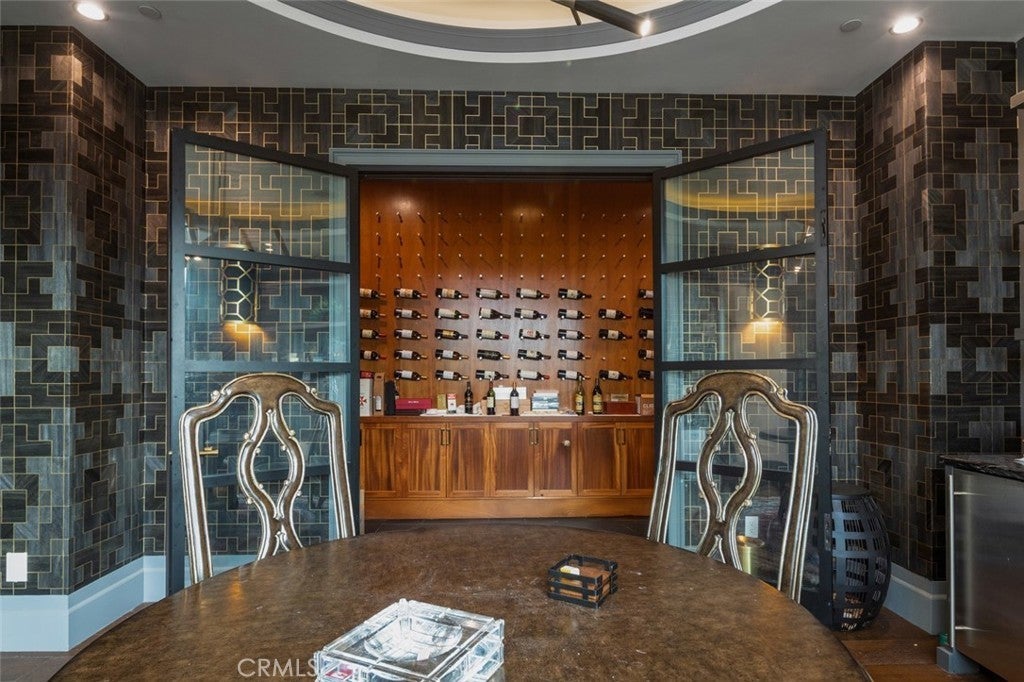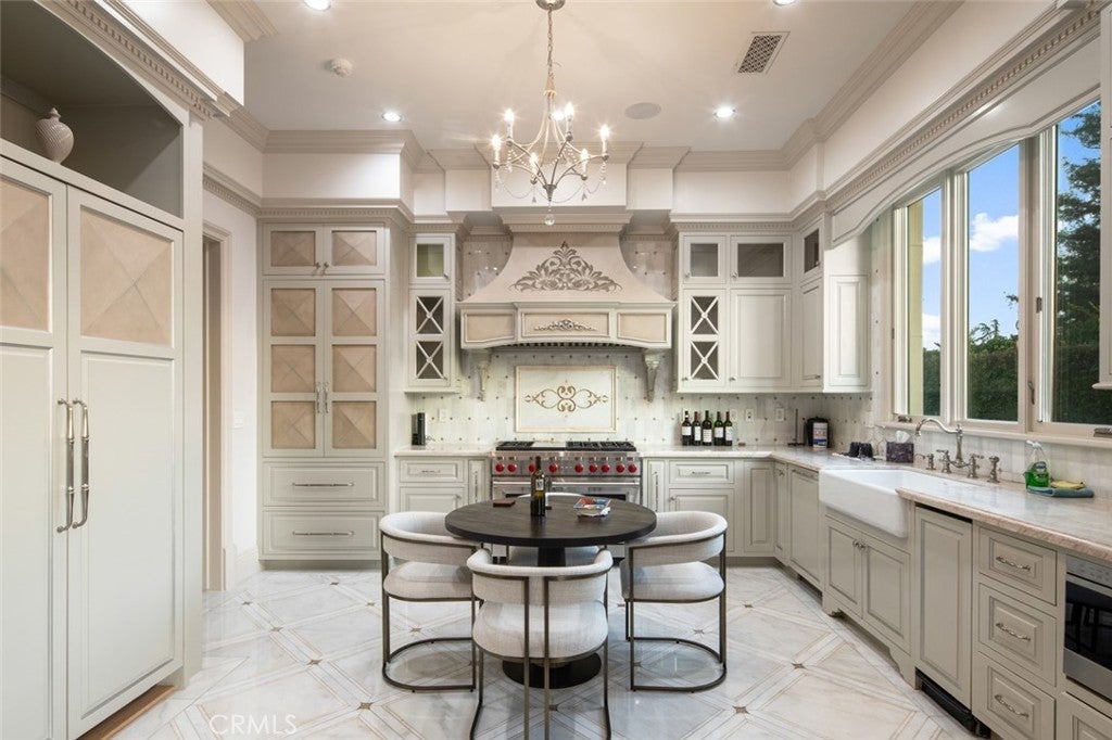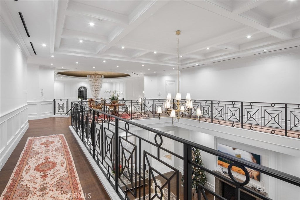 Balcony, Separate/Formal Dining Room, Pantry, Recessed Lighting, Bar, Beamed Ceilings, Breakfast Bar, Built-in Features, Coffered Ceiling(s), Crown Molding, Eat-in Kitchen, Elevator, Entrance Foyer, High Ceilings, Instant Hot Water, Main Level Primary, Multiple Staircases, Open Floorplan, Primary Suite, Stone Counters, Two Story Ceilings