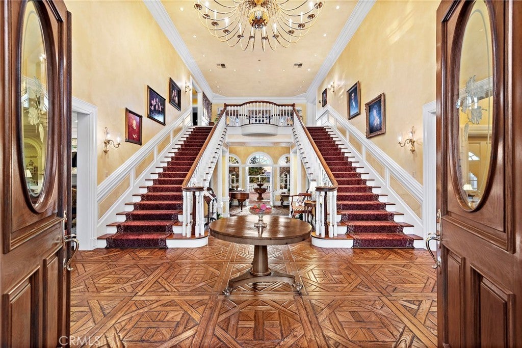 TWO MILLION DOLLAR PRICE DROP!!! DRASTICALLY REDUCED ICONIC LUXURY ESTATE: EXCEPTIONAL VALUE-HURRY TO SEE!!! "Magnolia Pointe," a magnificent Southern Charm Mansion, is nestled at the end of a quiet cul-de-sac atop a hill in the prestigious Nellie Gail Ranch community, offering the perfect blend of elegance and timeless beauty. Situated on 4.4 acres, this luxury estate offers breathtaking views, unmatched privacy, and 6 bedrooms and 9 bathrooms, spanning 8,736 square feet. Upon entering through private gates, a stunning magnolia tree greets you, setting the tone for this incredible home. The expansive roundabout driveway adds an extra touch of grandeur, making every arrival feel magical. A grand dual staircase welcomes you into a spacious, open interior. Custom hardwood parquet floors flow throughout, complemented by expansive windows that fill the rooms with natural light and capture the breathtaking views. Soaring ceilings, crown molding, and refined finishes throughout further elevate the space. The gourmet kitchen is a chef’s dream, featuring a large central island, Viking stove, and Sub-Zero appliances, including dual refrigerator and freezer drawers. A mirrored butler’s pantry blends style and practicality. The primary suite is a private retreat, offering two balconies with sweeping views. A spiral staircase on one balcony leads outdoors, while his-and-hers bathrooms and a sauna on his side provide a serene, luxurious experience. Coffered ceilings grace the billiard room, family room, and office, creating peaceful spaces for work or relaxation. The family room, with a cozy fireplace, built-in cabinetry, wet bar, and bath, is perfect for both casual and formal gatherings. For wine enthusiasts, a vintage vault door leads to a wine cellar, ideal for tastings or quiet enjoyment. A charming birdcage elevator adds a touch of elegance and convenience. Outside, the expansive grounds feature a pool, jacuzzi, and putting green, with room for a tennis court, horse stable, or ADU. Direct access to Nellie Gail Ranch’s horse trails is perfect for equestrian enthusiasts. A 4-car garage, limousine garage, and areas for more parking with ample storage provide both luxury and practicality. This Magnificent Estate is where elegance and comfort converge to create unforgettable moments. Whether hosting gatherings, relaxing in private areas, or savoring the panoramic and breathtaking views of the hills, city lights and mesmerizing sunsets-absolutely stunning!