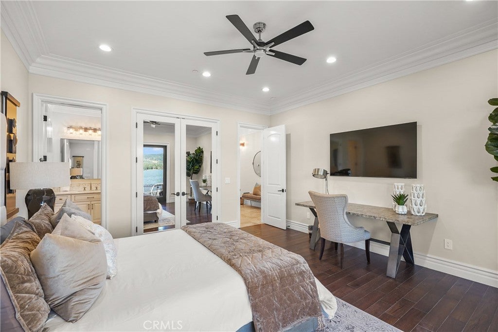 This fully modern remodeled lakefront home in Fawnskin, Big Bear Lake, in a private gated area offers a perfect blend of luxurious living and natural beauty. With six spacious bedrooms 6.5 bathrooms including a steam shower in the master suite. plus an extra game room and family room. The open-concept floor plan allows for seamless flow between the living spaces, with floor-to-ceiling windows that bring in an abundance of natural light while showcasing breathtaking lake views. Large glass doors open directly to outdoor patios, offering the perfect setting to enjoy a drink and take in the serene surroundings. The home boasts a stunning island kitchen equipped with high-end finishes and LED lighting, which can be controlled remotely from your phone for convenience. This chef-inspired kitchen is perfect for entertaining guests or enjoying a quiet meal. Adjacent to the kitchen is a cozy family room with ample seating, providing a great space for relaxing and socializing. The property also includes a game room with a bar area, ideal for hosting parties or enjoying casual evenings with loved ones. A private 3 slip dock extends from the property, offering direct access to the water for boating, fishing, jet skis, or simply enjoying the lakefront lifestyle. With unparalleled views of the lake and surrounding mountains, the home truly makes you feel as if you're on the water itself. Whether you’re relaxing indoors, enjoying the outdoors, or hosting gatherings in the game room, this home is a perfect sanctuary for those seeking luxury, comfort, and a prime location on Big Bear Lake.